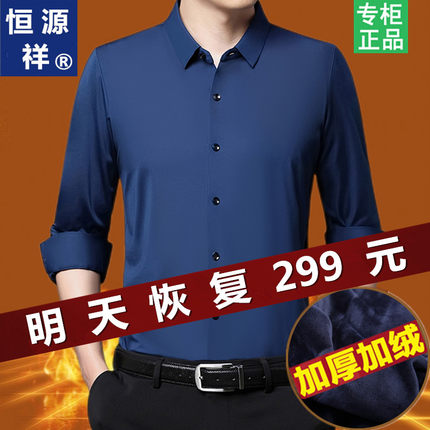 恒源祥加绒加厚衬衫中年男士秋冬免烫高端桑蚕丝无痕休闲保暖衬衣