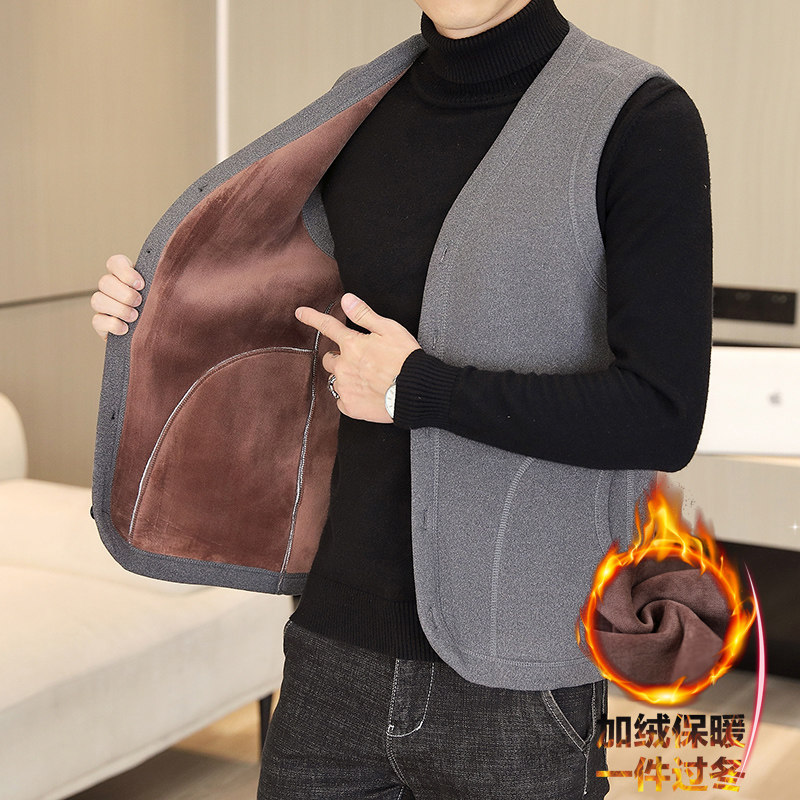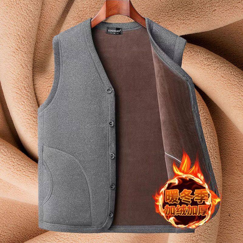 中老年人马甲男冬季加绒加厚抓绒爸爸装棉坎肩内外穿爸爸保暖背心