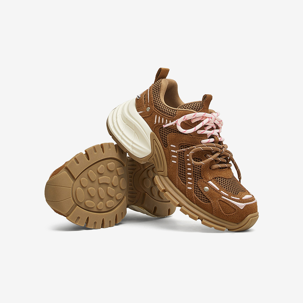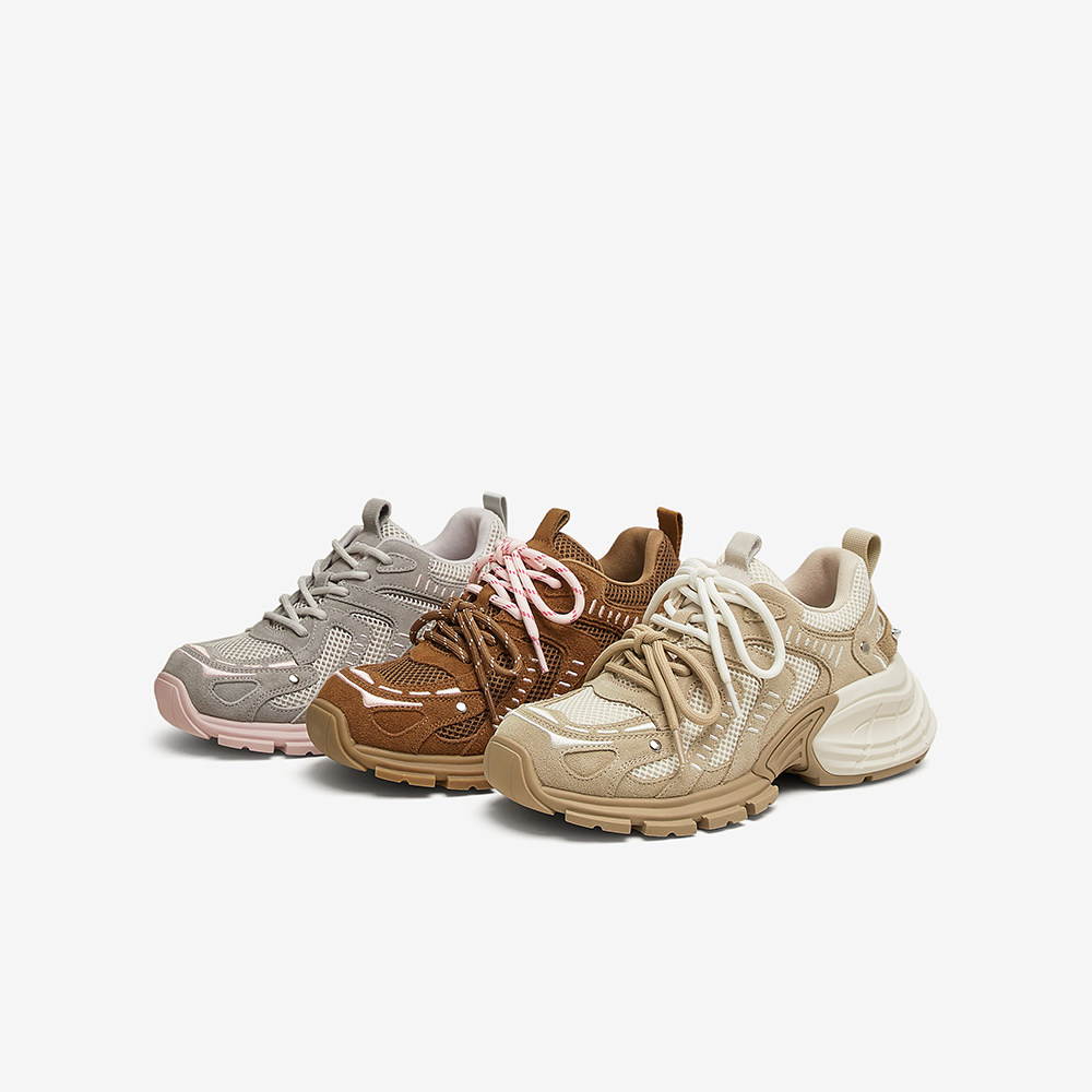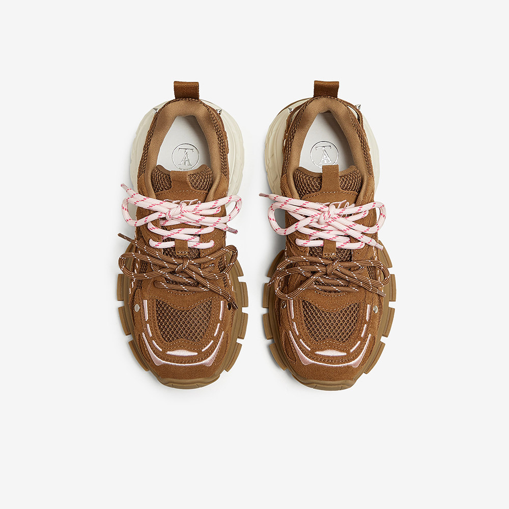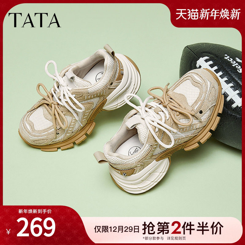 TATA他她复古厚底老爹鞋女鞋棕色撞色休闲运动鞋2025新款GNR01AM5