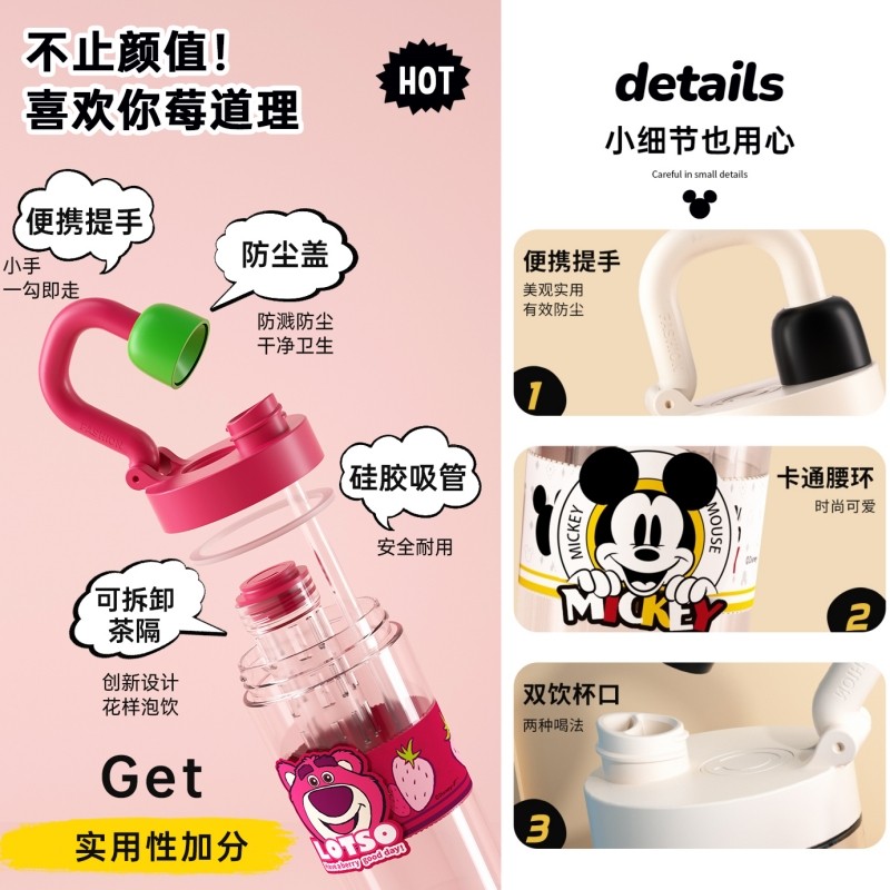 迪士尼正品水杯可拆茶隔花茶双饮夏季杯学生耐摔便携tritan随手杯