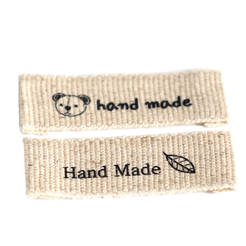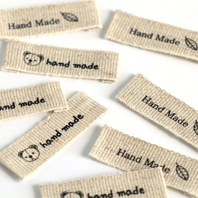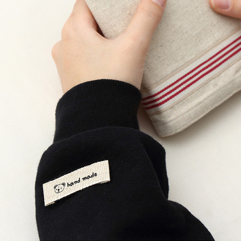 韩国happybears亚麻布标 装饰标签 手工领标米色织唛handmade小熊
