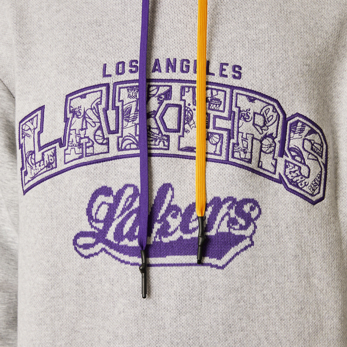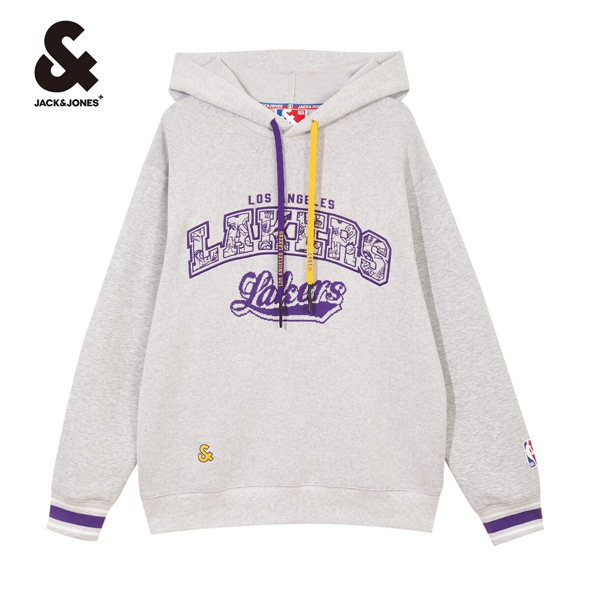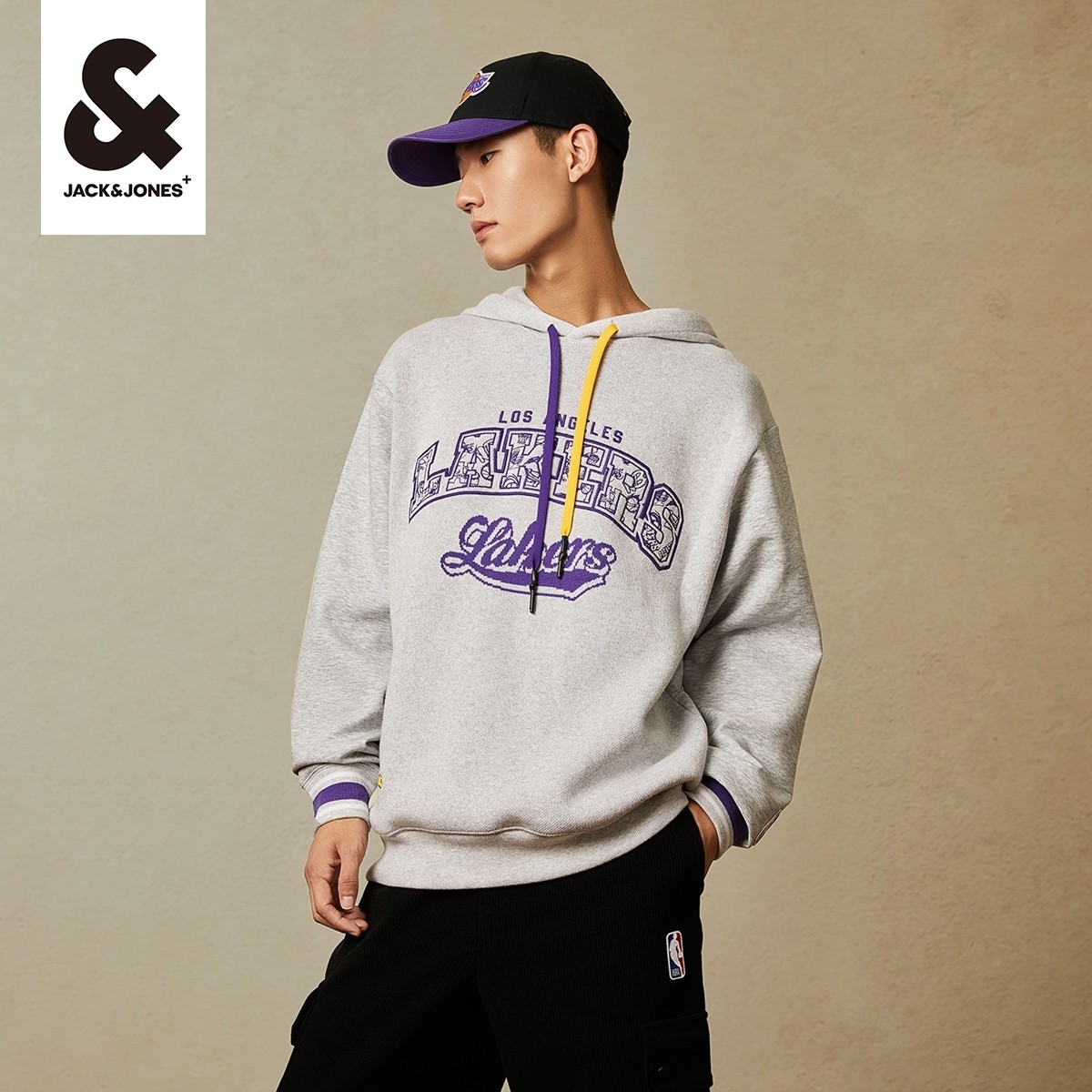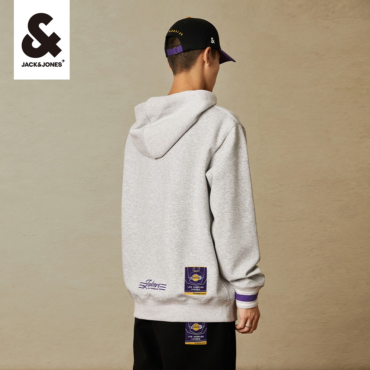 杰克琼斯秋季NBA联名湖人队宽松连帽拼接休闲套头卫衣男款男装