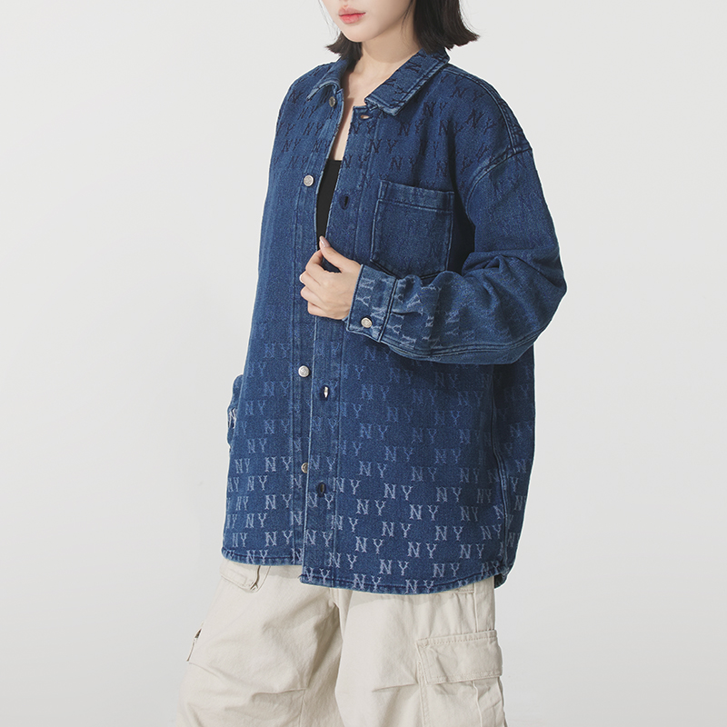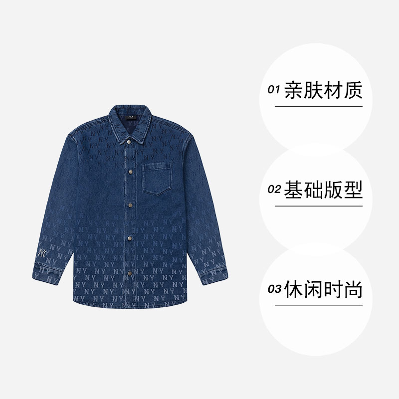 【自营】MLB男女长袖衬衫新款时尚休闲运动服户外简约牛仔外套