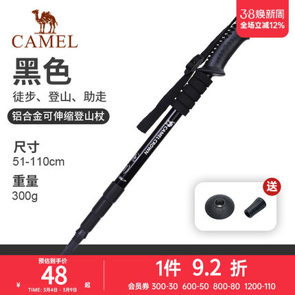 骆驼户外登山杖手杖碳纤维爬山装备超轻防滑拐杖轻便伸缩行山拐棍