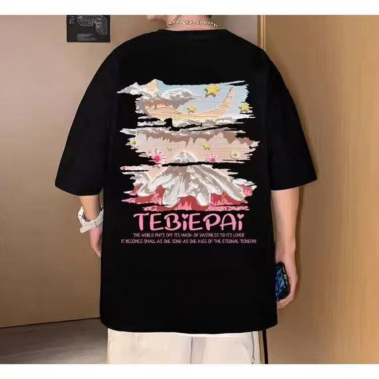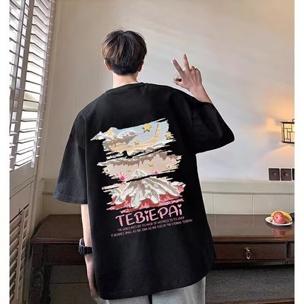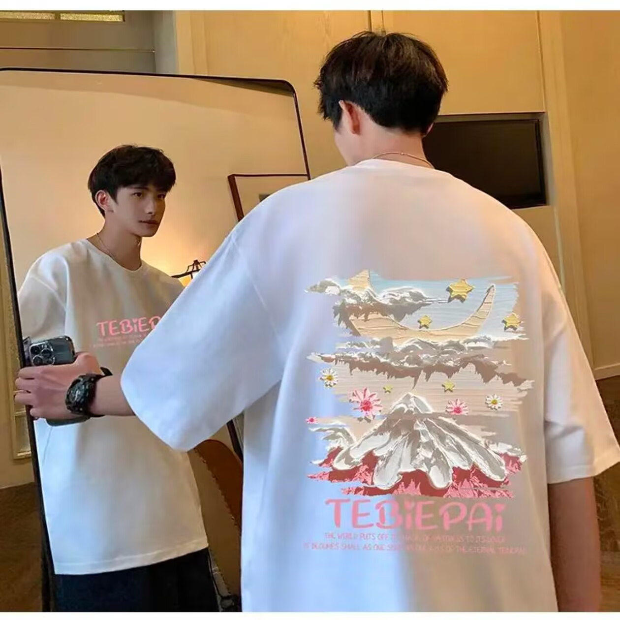 【精品】满68包邮◆2025夏季男女款港风潮流百搭清新雪山印花T恤