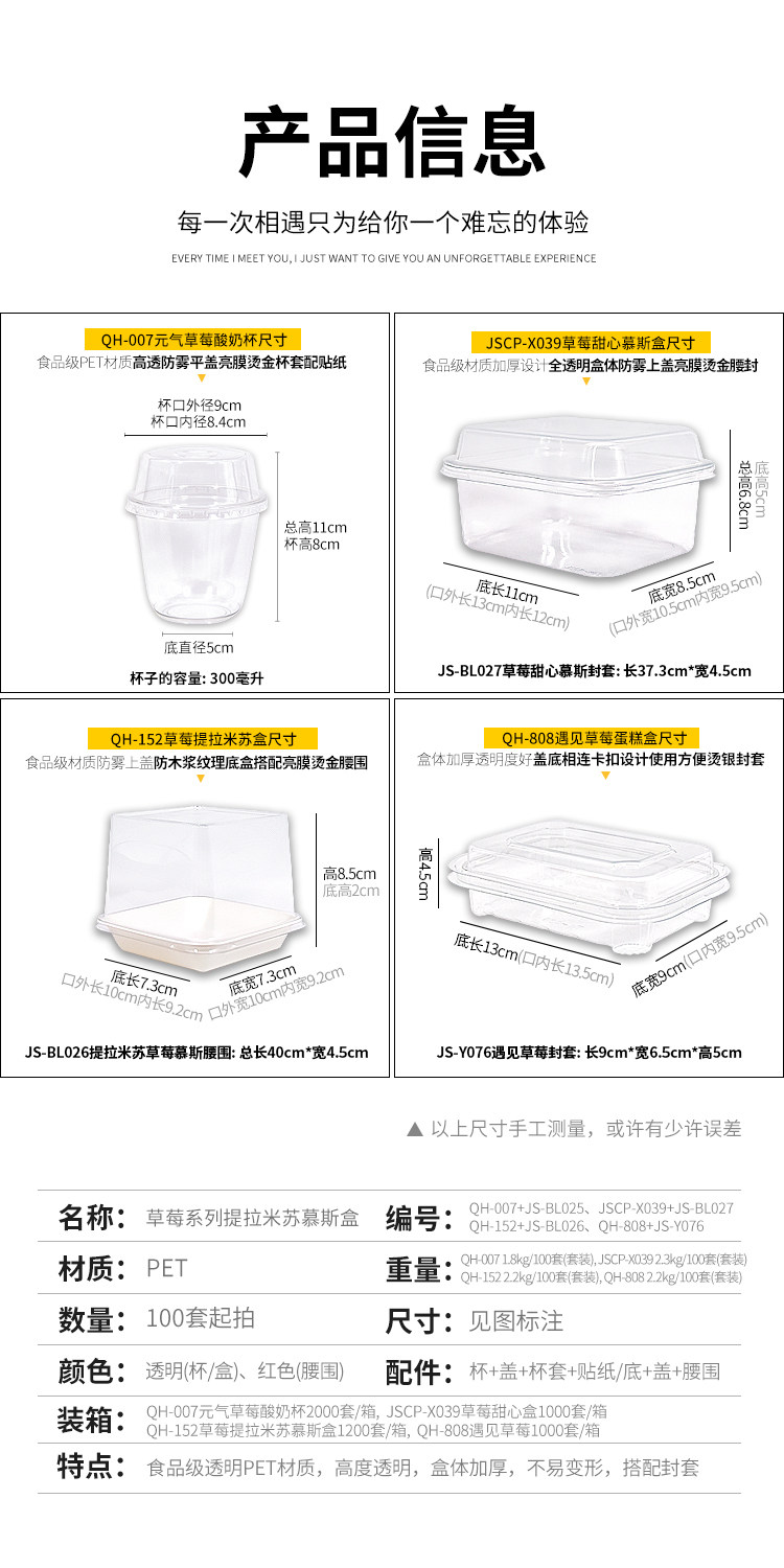 元气草莓酸奶蛋糕杯提拉米苏草莓慕斯盒草莓甜心甜品千层蛋糕盒子