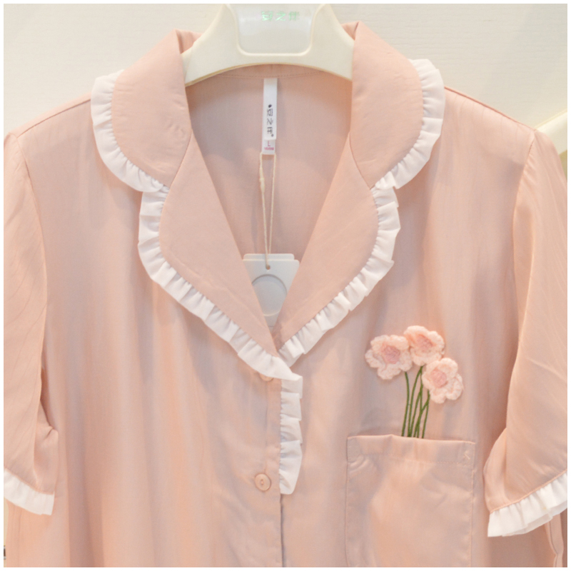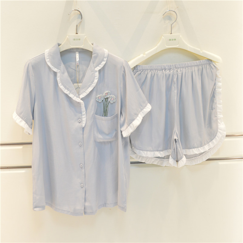 安之伴睡衣夏季新品女士梭织木棉丝薄款甜美简约短袖短裤家居服套