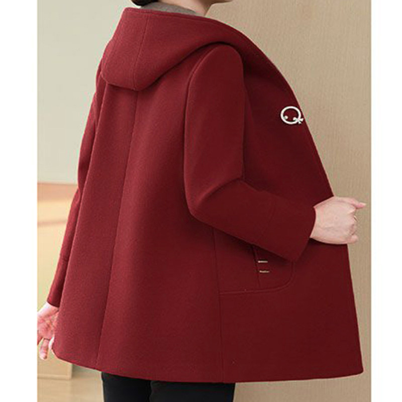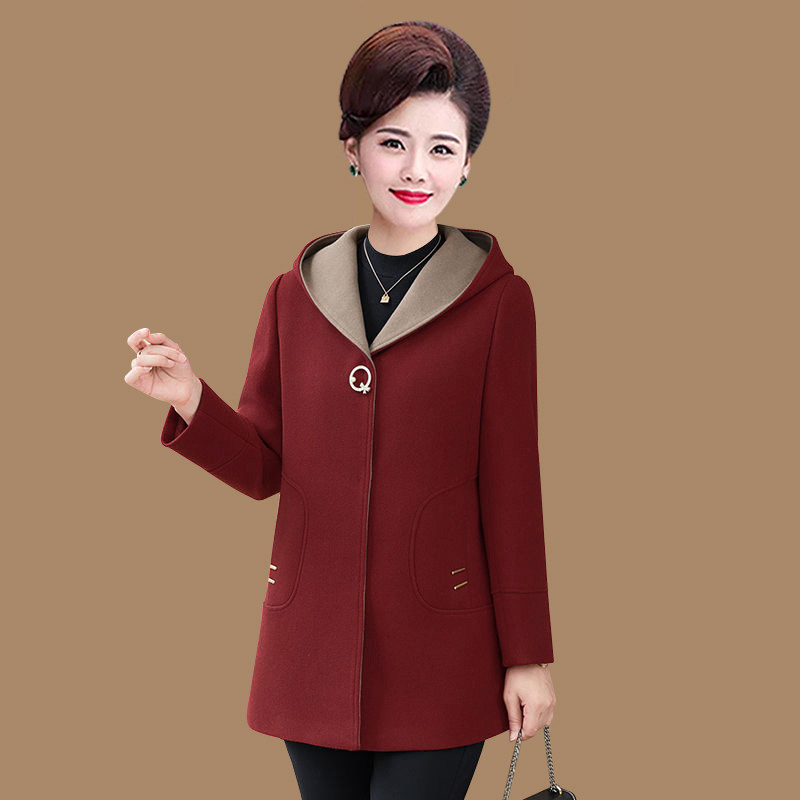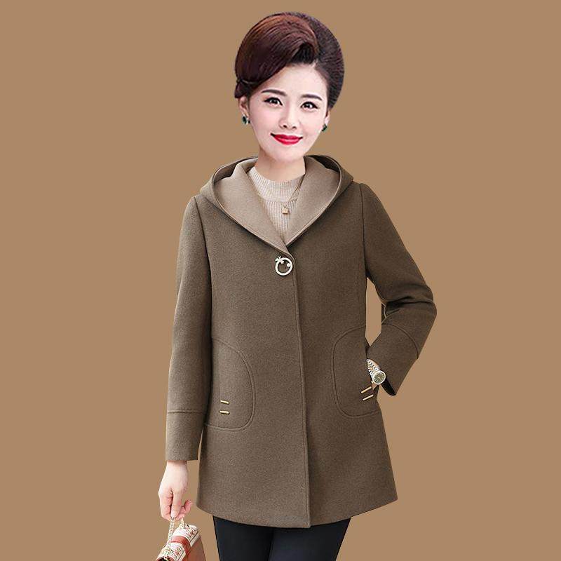 新款中老年女装秋冬装连帽羊毛大衣高贵加大码妈妈中长款呢子外套