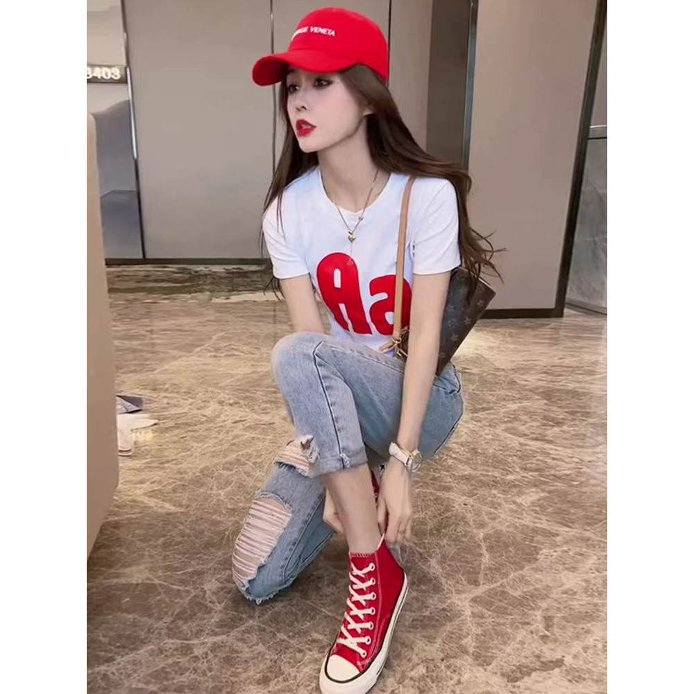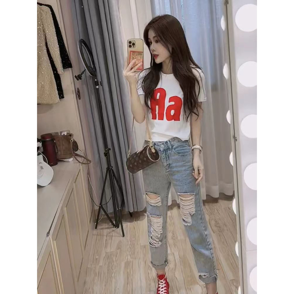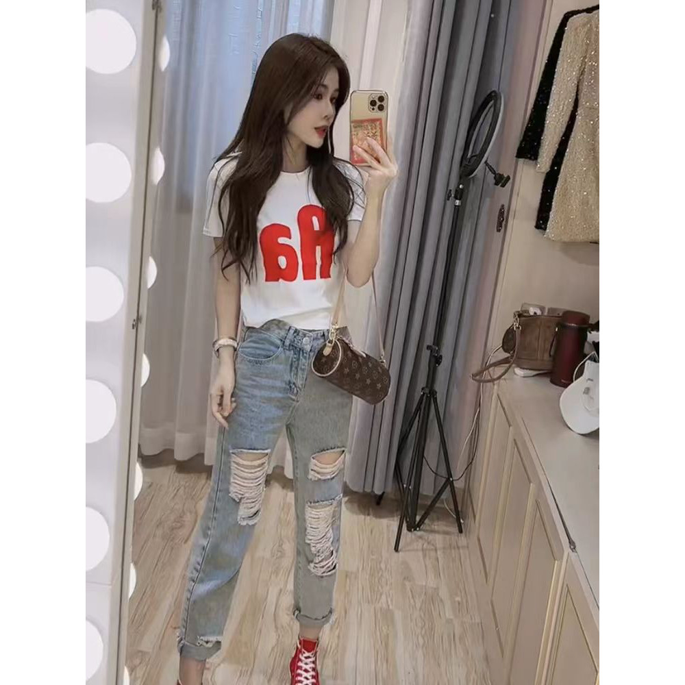 烂洞牛仔裤女2023春夏季新款破洞九分裤宽松显瘦乞丐裤潮