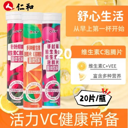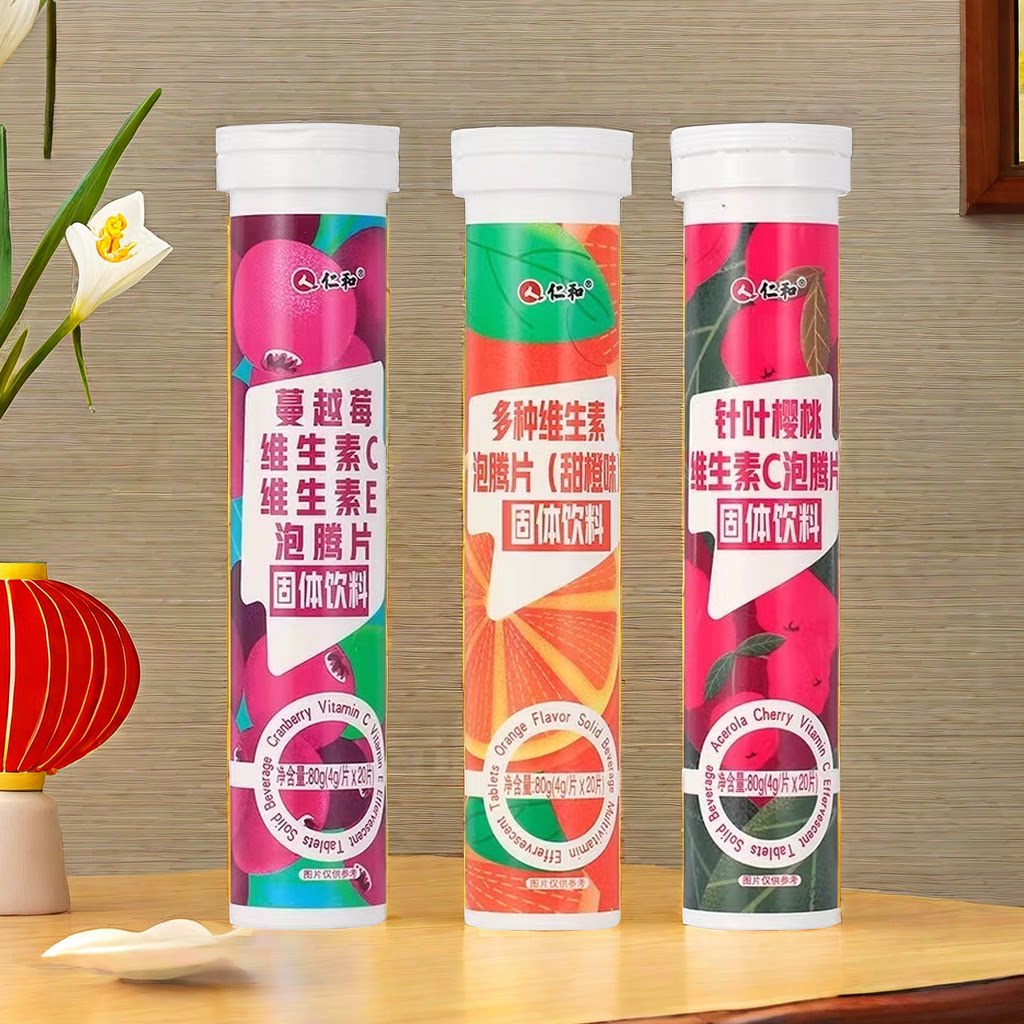 仁和泡腾片补充维生素C多种VC学生甜橙樱桃味蔓越莓泡水饮料男女