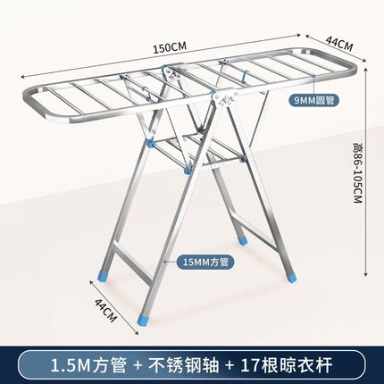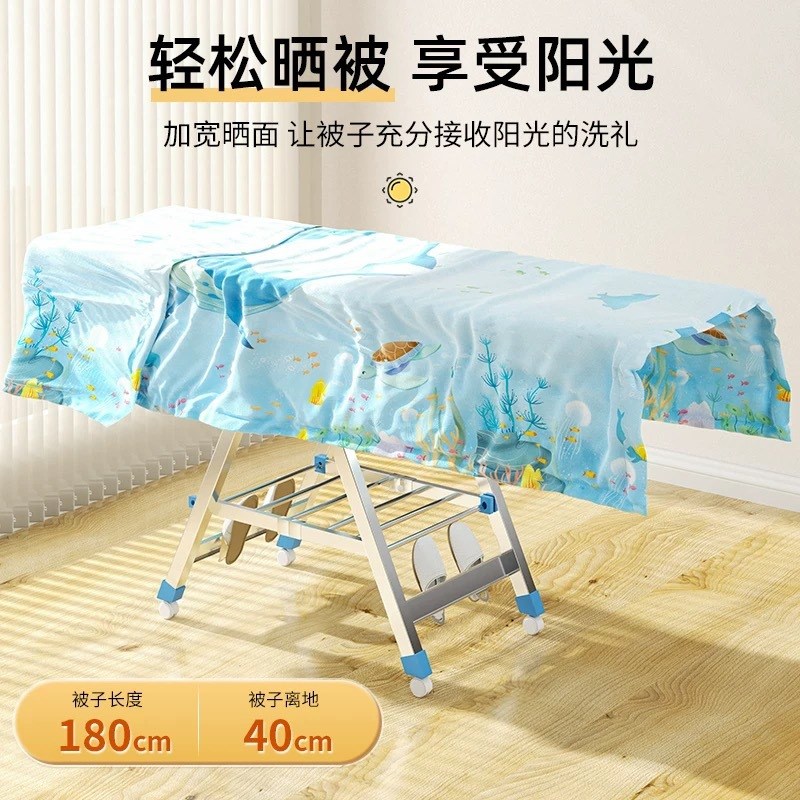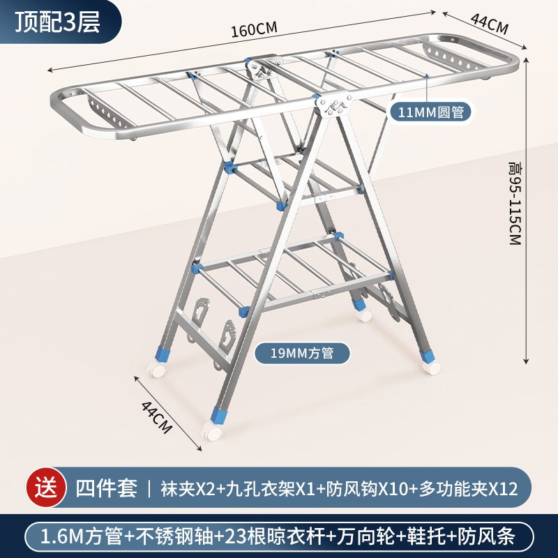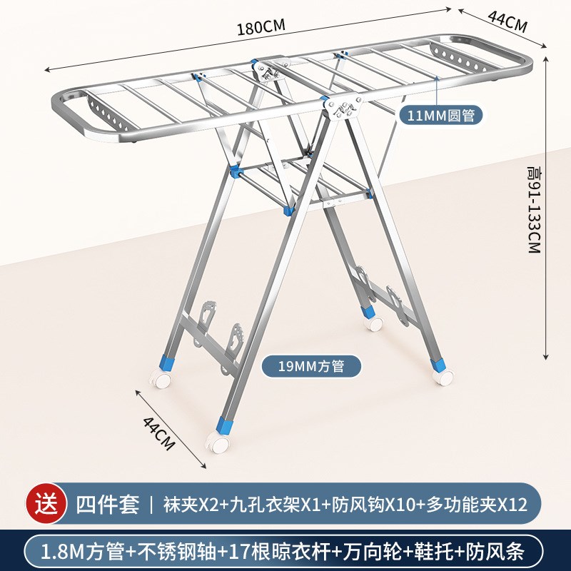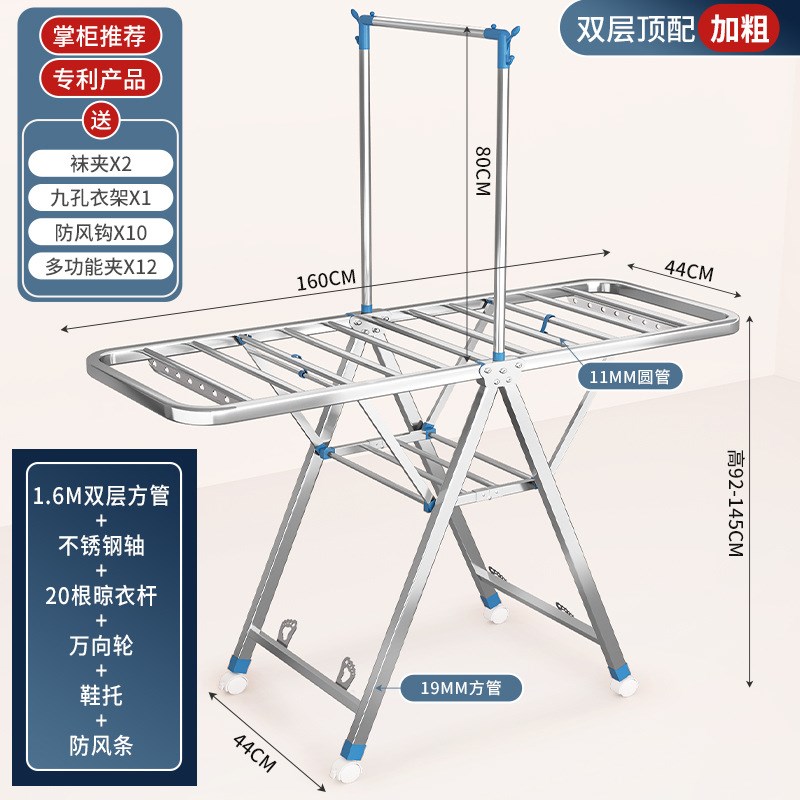 不锈钢折叠翼型h衣架加粗可移动晒被晒衣架阳台加粗款落地衣架家