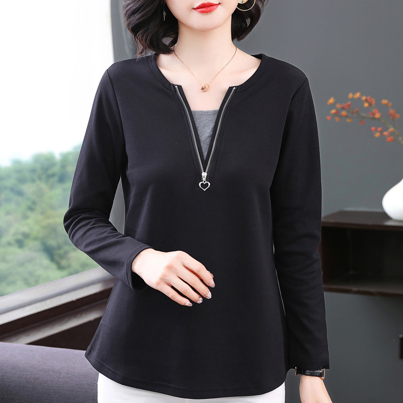 假两件长袖t恤女2025春秋新款中老年妈妈装外穿V领洋气上衣打底衫