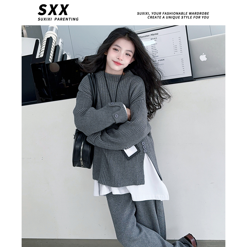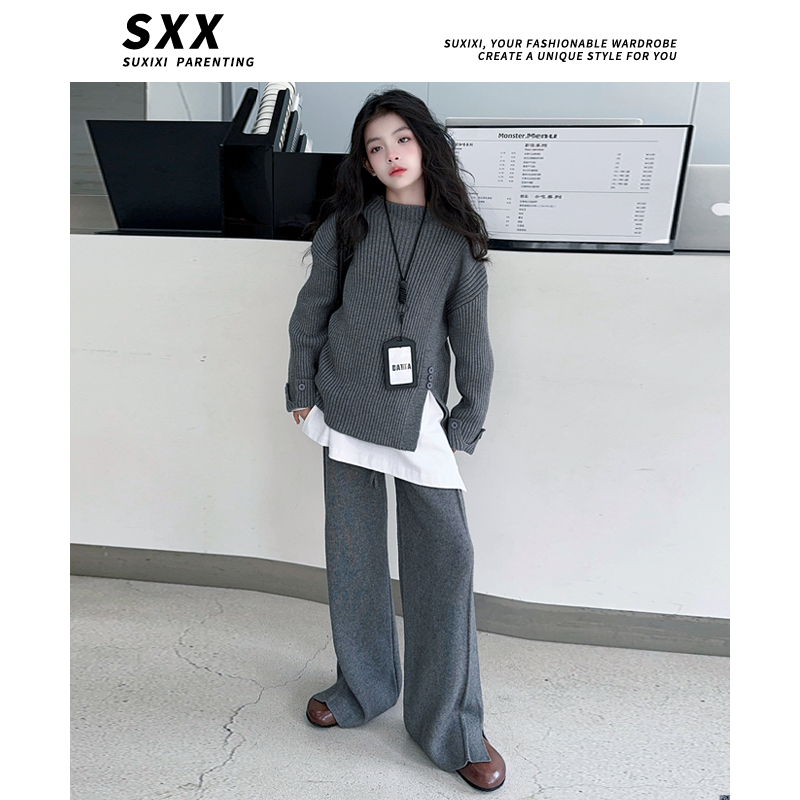 女童2025毛衣秋冬款新款儿童韩版休闲保暖针织衫阔腿裤两件套洋气