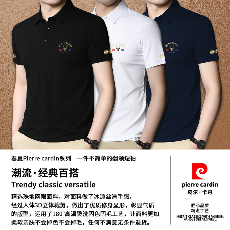 皮尔卡丹夏季男士polo衫短袖t恤休闲商务爸爸装2025新款纯棉翻领