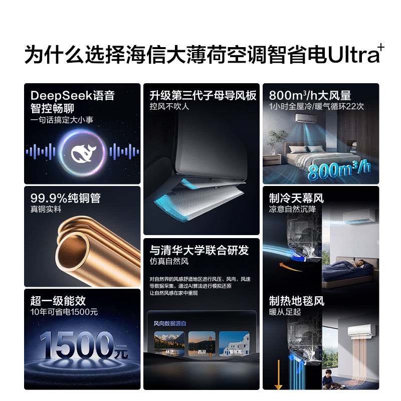 海信大薄荷智省电Ultra大1.5匹挂机卧室一级能效世界杯定制空调