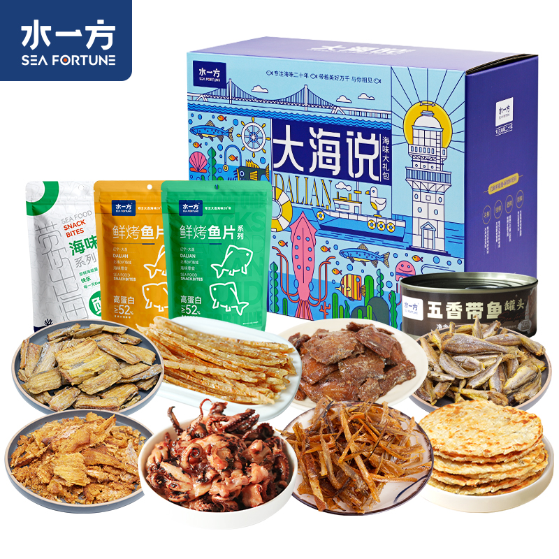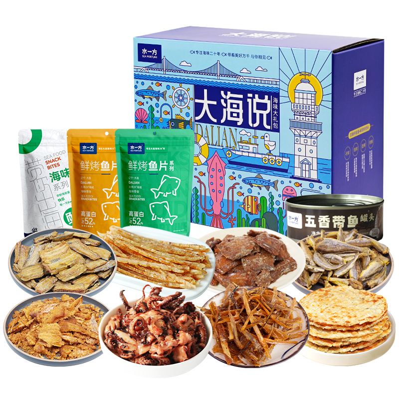 水一方海味零食缤纷礼盒大连旅游特产鱿鱼丝鱼片即食年货海鲜礼包
