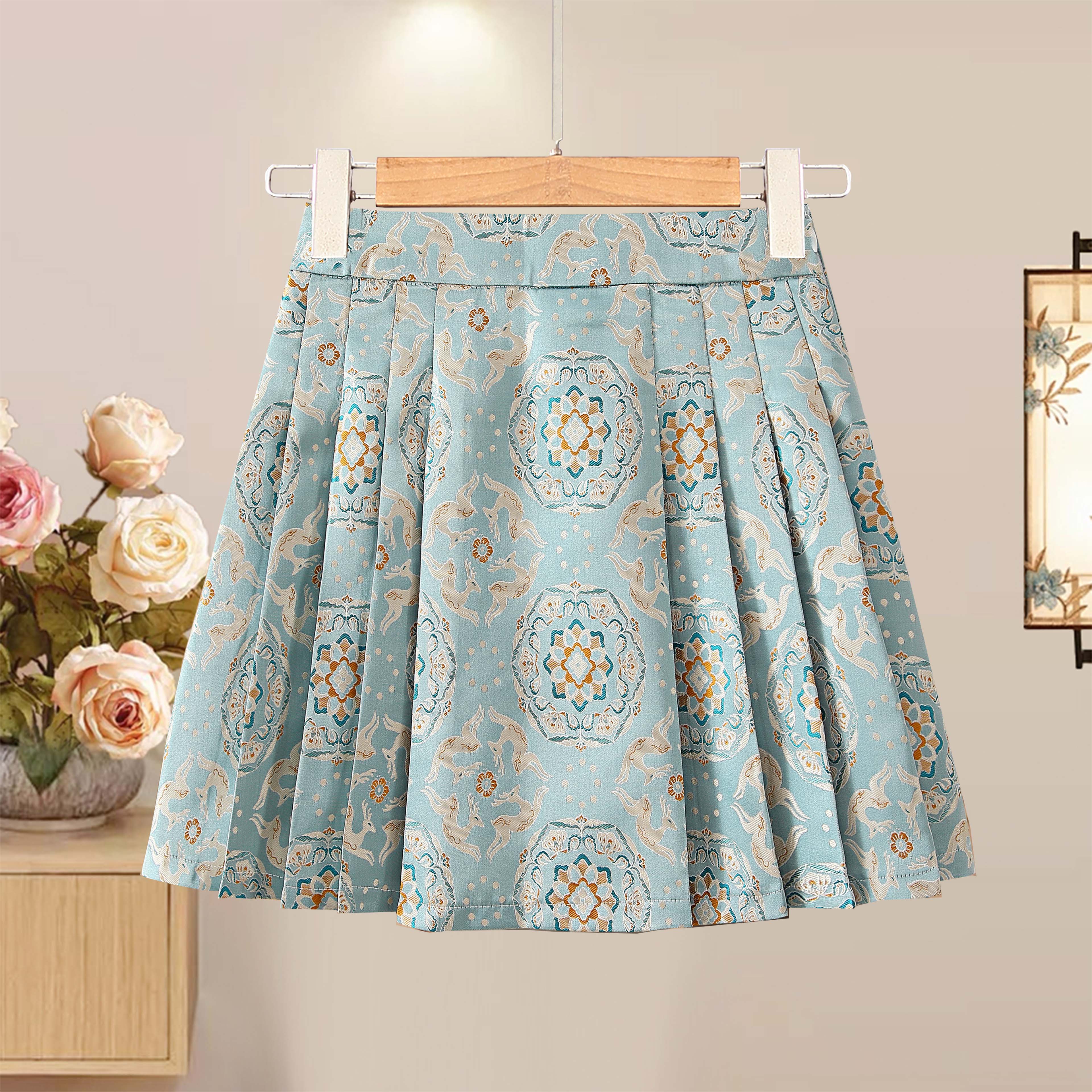 提花百褶裙夏季高腰遮胯设计感小个子新中式国风短裙防走光半身裙