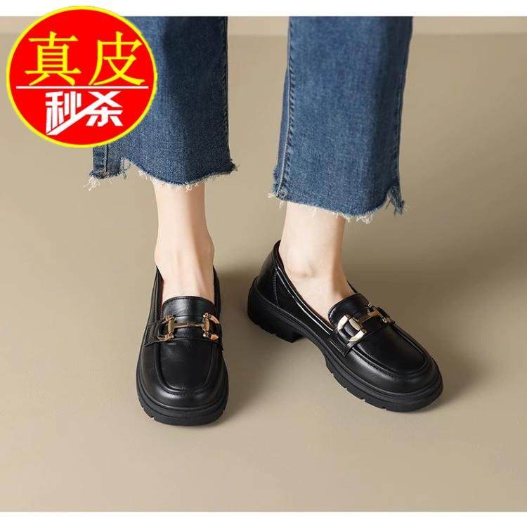 专柜真皮英伦风小皮鞋厚底乐福鞋