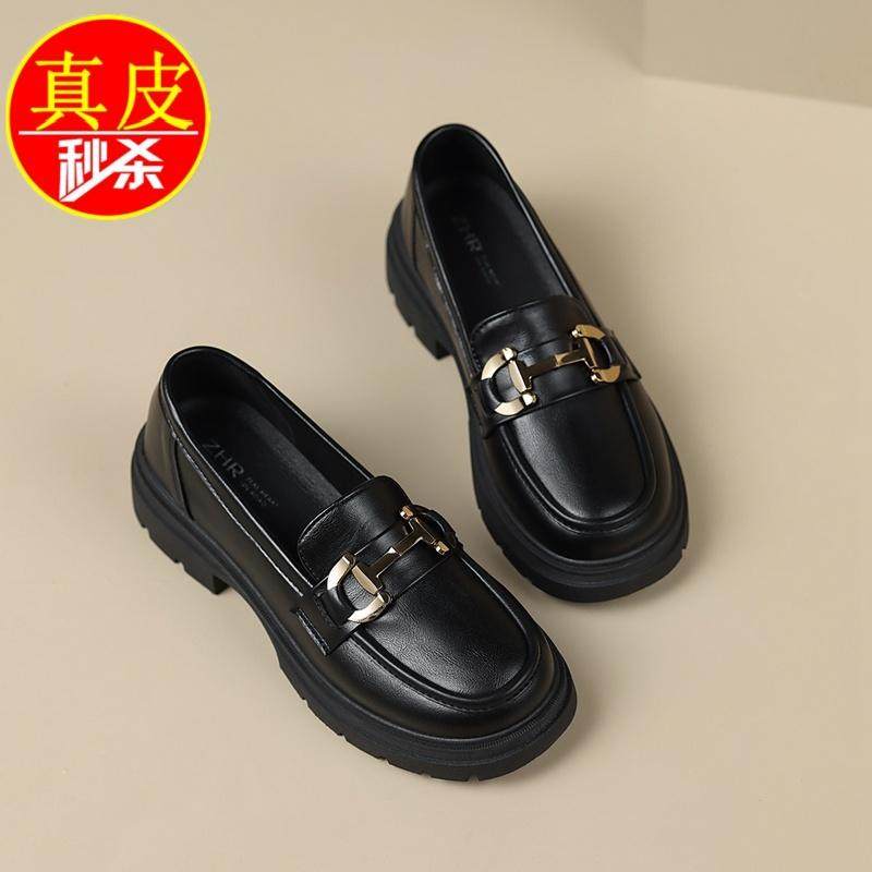 专柜款厚底乐福鞋女2025春秋新款鞋子黑色小皮鞋英伦风百搭单鞋潮