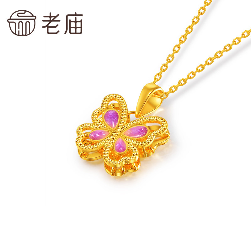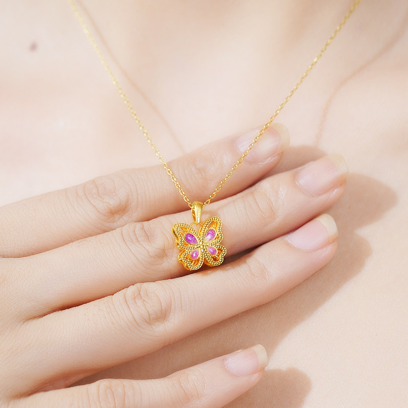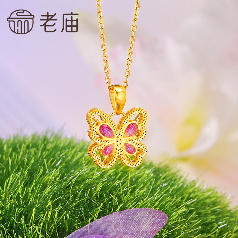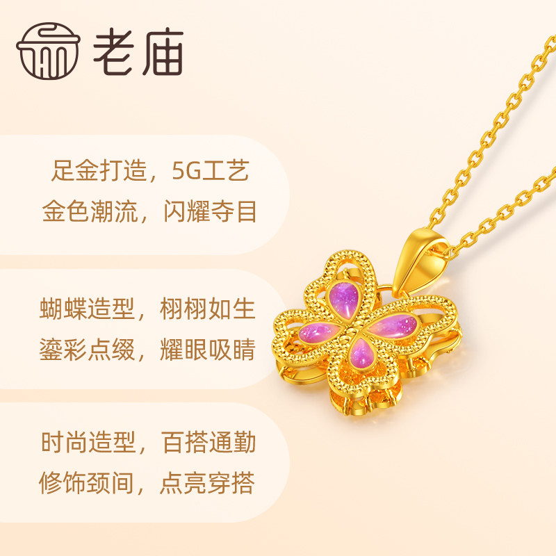 老庙黄金足金鎏彩蝶恋蝴蝶挂坠5G工艺栩栩如生精致时尚悦己主义
