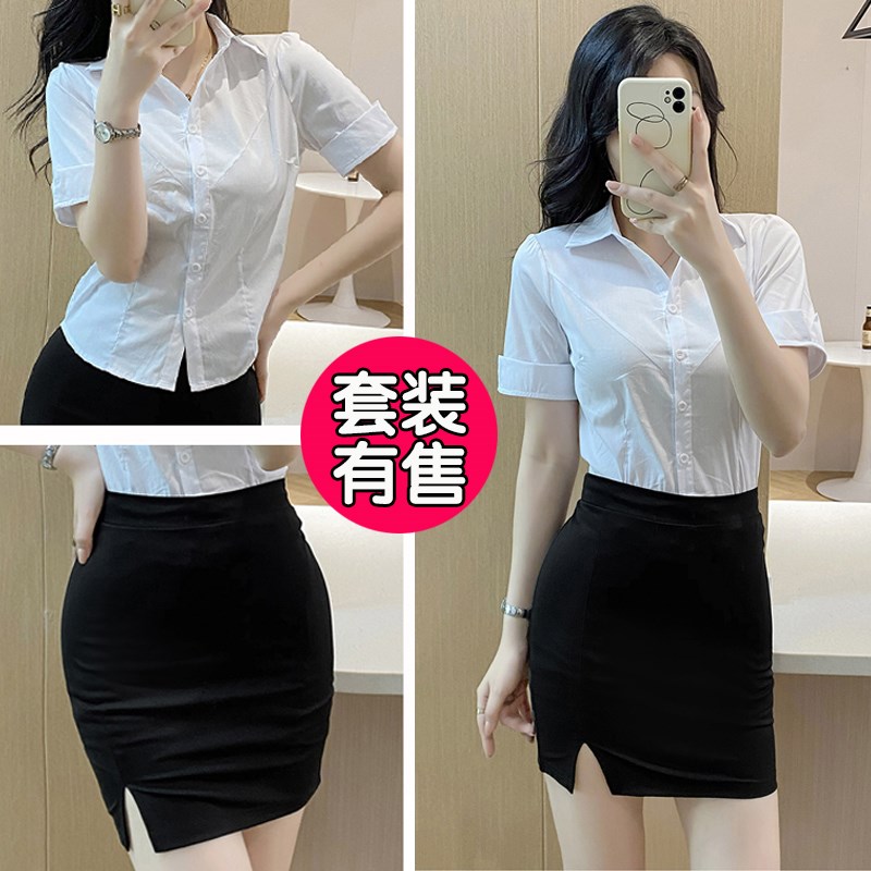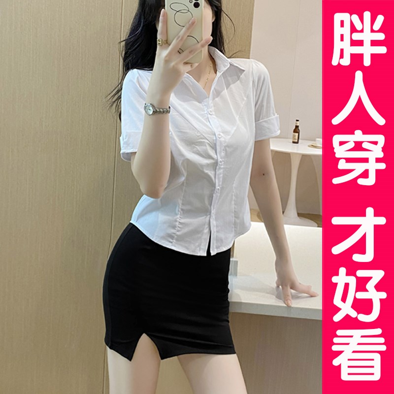 微胖短袖白色衬衫女大码制服套装工作服职业装OL裙子衬衣胖mm夏季