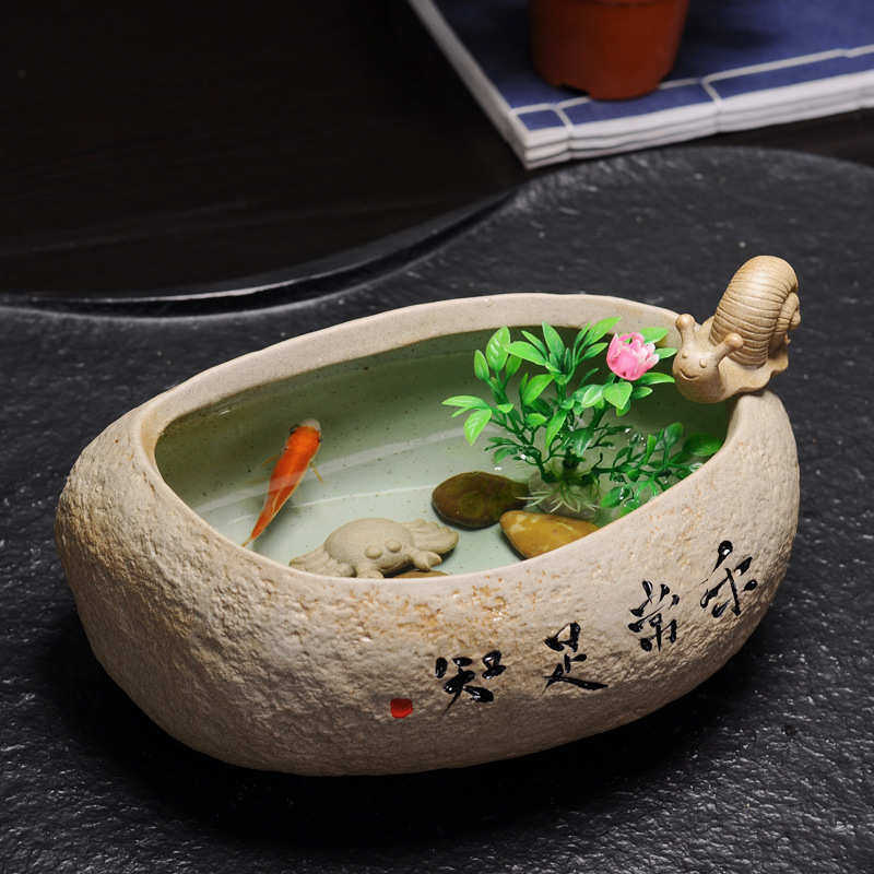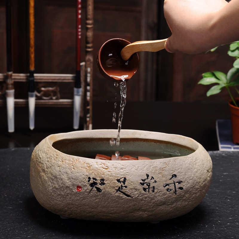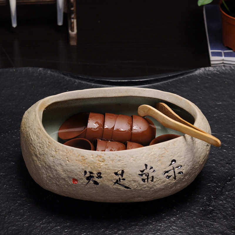 陶瓷茶洗创意简约洗茶杯容器覆古粗陶老岩泥手写茶碗花盆鱼缸