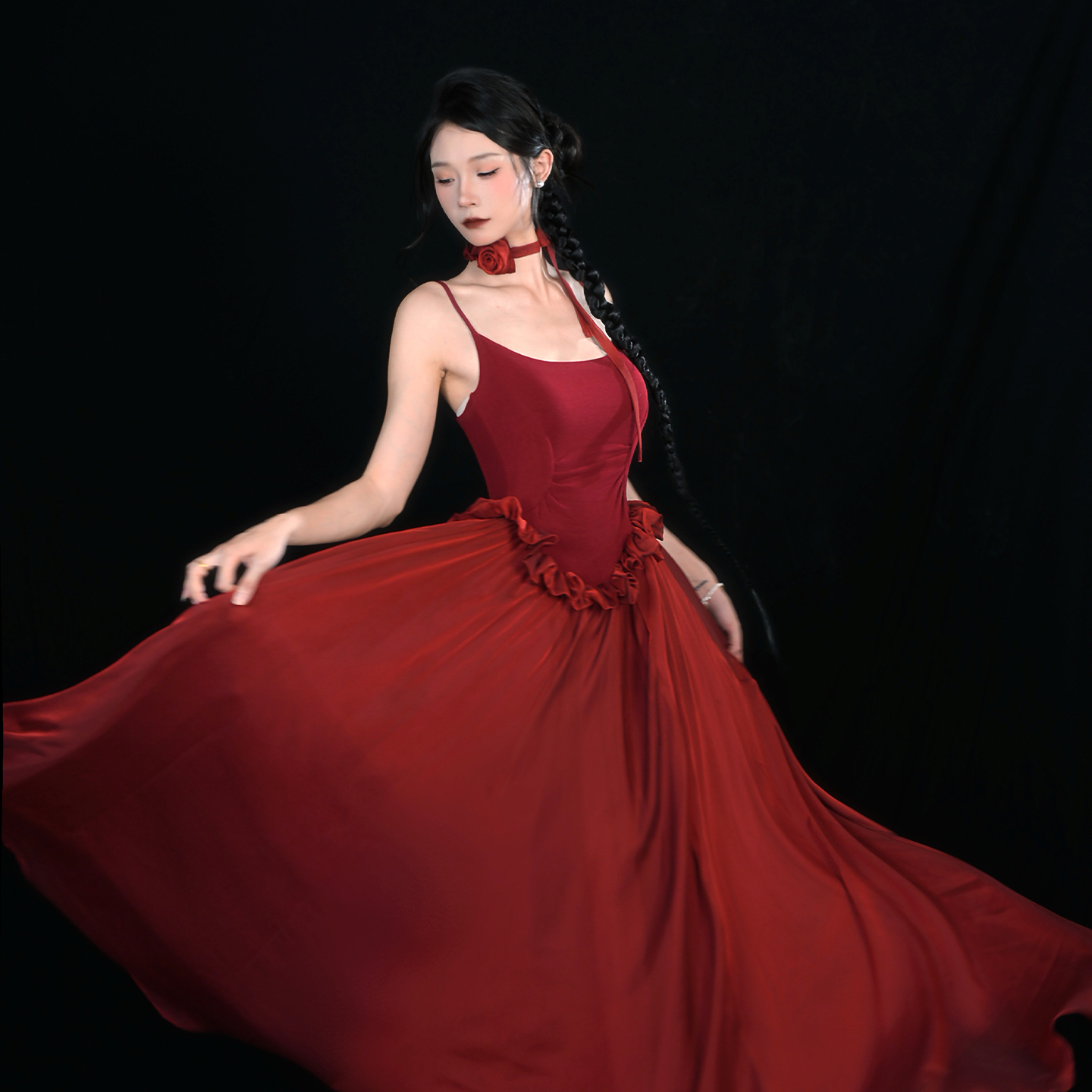人间蜉蝣 红绡·绯想绯色浪漫主义裙装盛夏出游连衣裙女暑期吊带