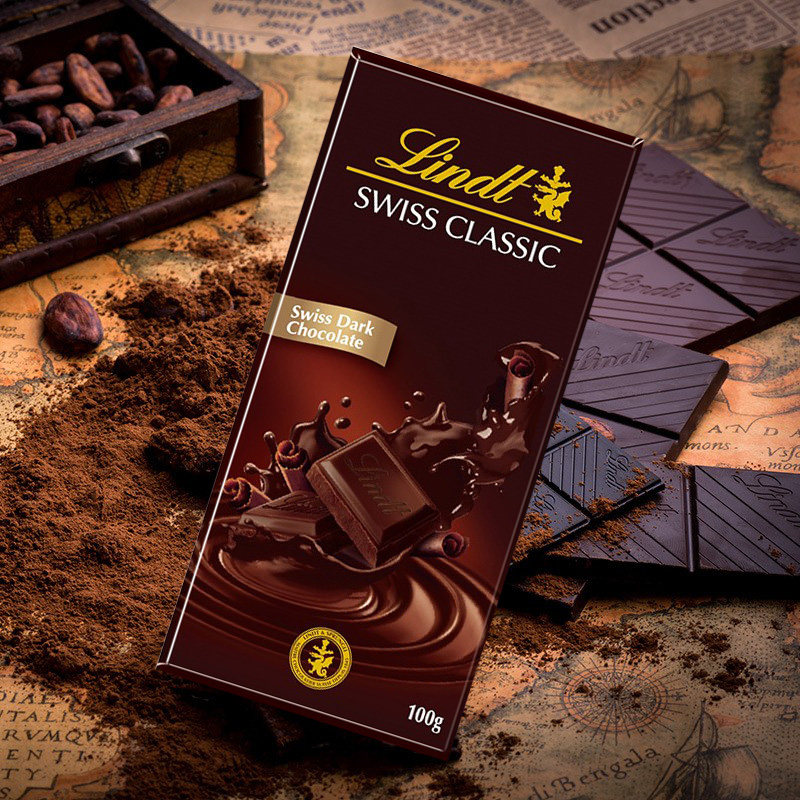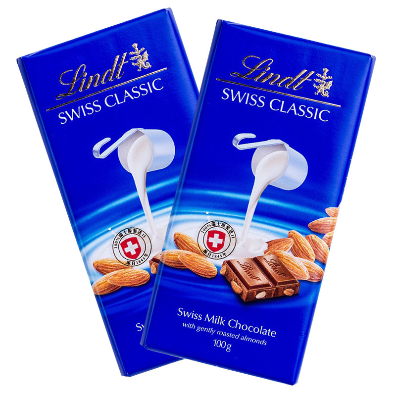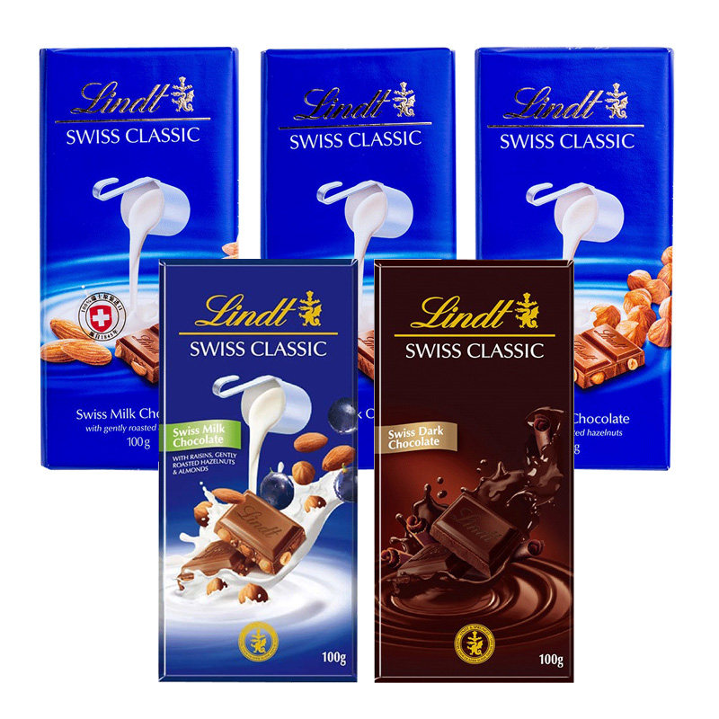 Lindt瑞士莲进口swiss经典排块榛仁牛奶黑巧克力100g年货节礼物