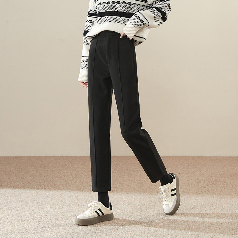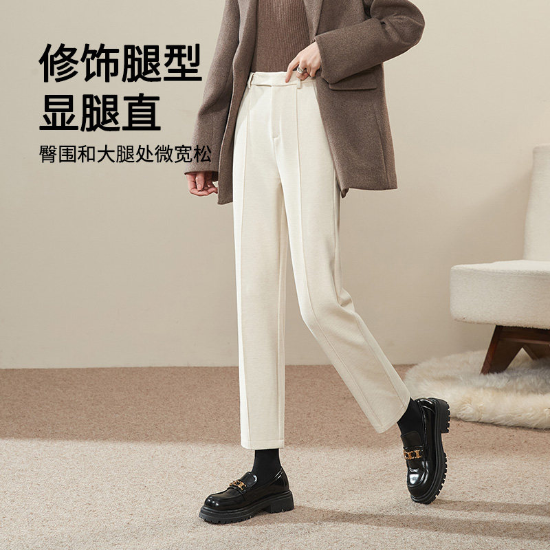 逸阳保暖毛呢西装裤女2025秋冬高腰遮肉显瘦哈伦裤九分烟管版西裤