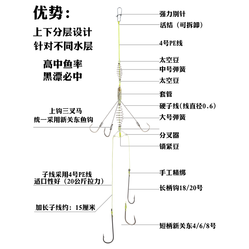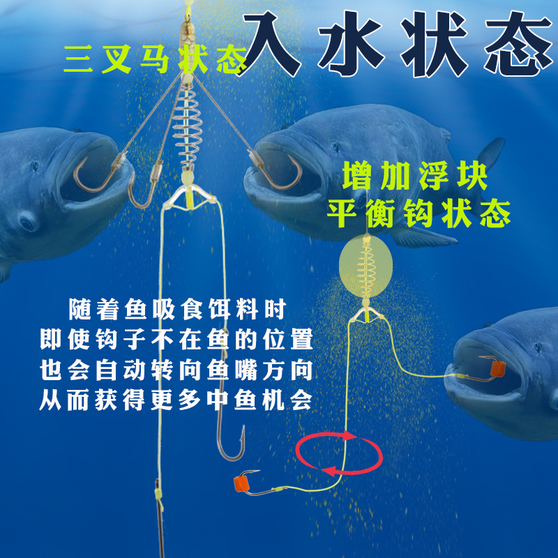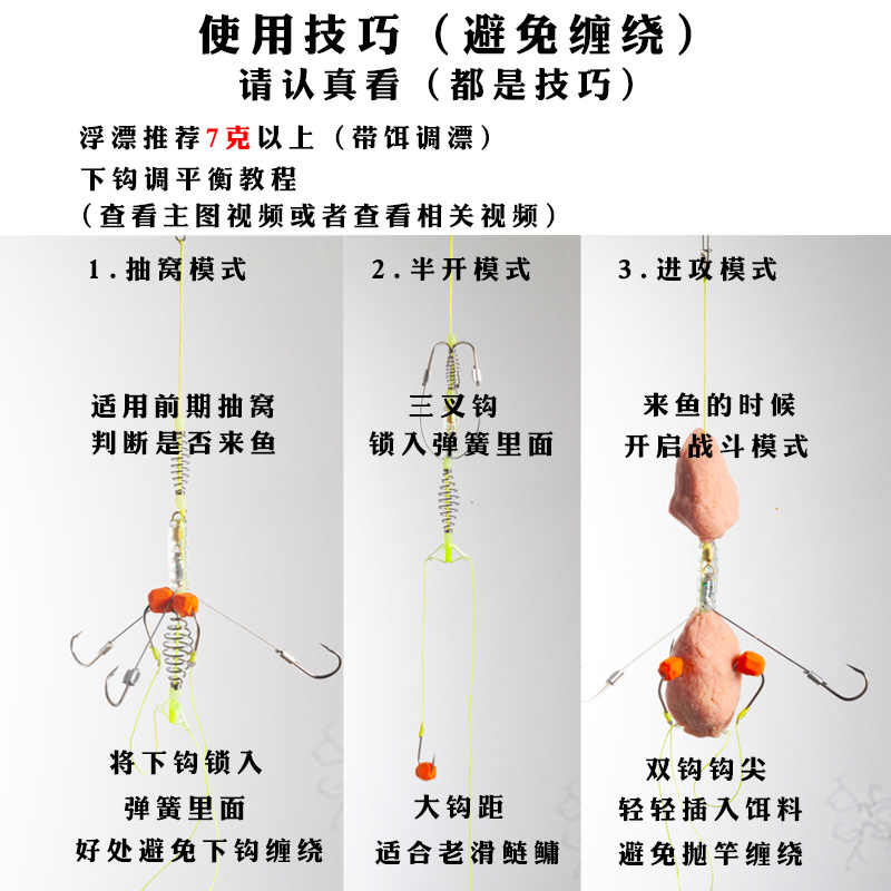 单挑王双层钓组平衡钩钓组鲢鳙专用钩手竿长柄钩弹簧子线钓组鱼钩