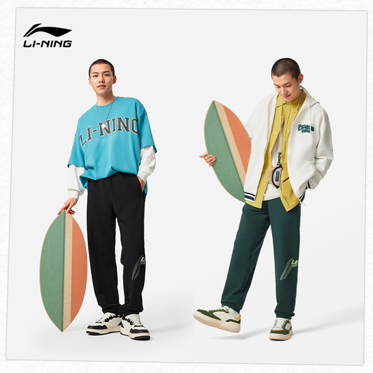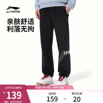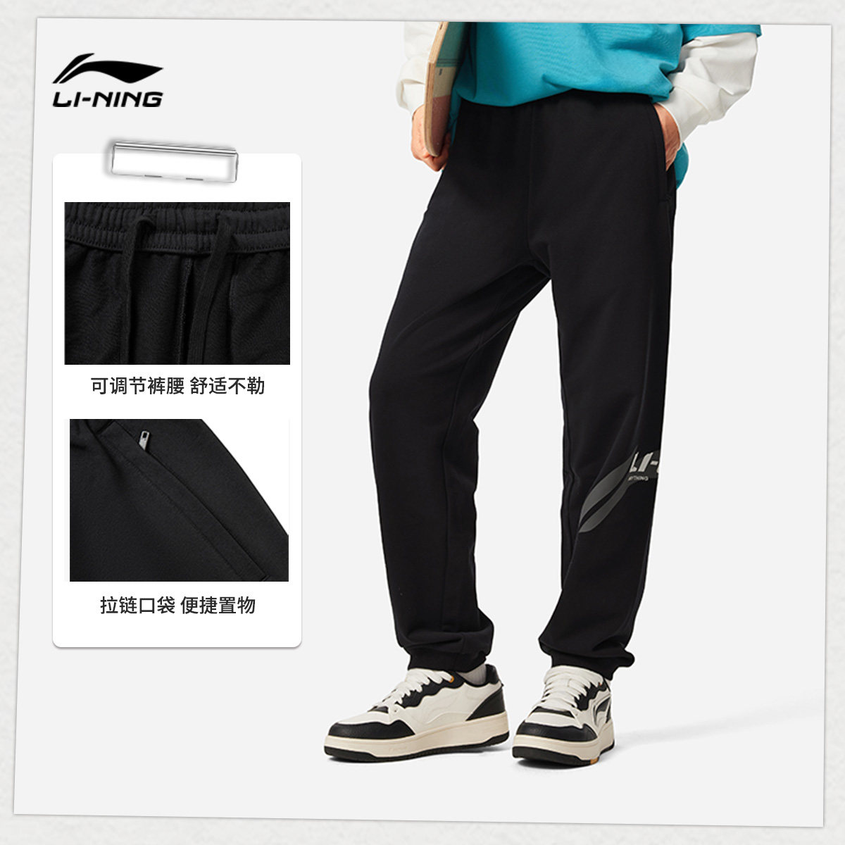 李宁卫裤新款黑色裤子男士春季休闲裤束脚针织运动裤健身跑步长裤