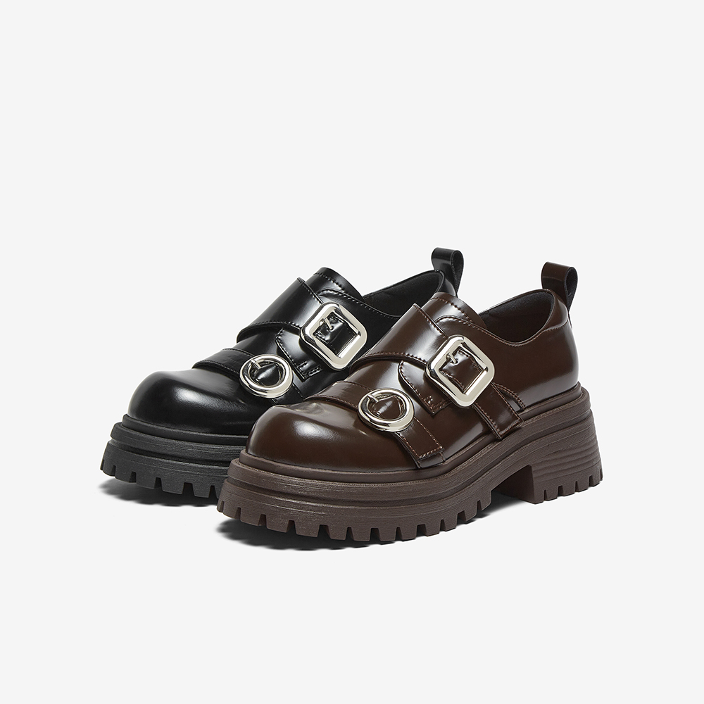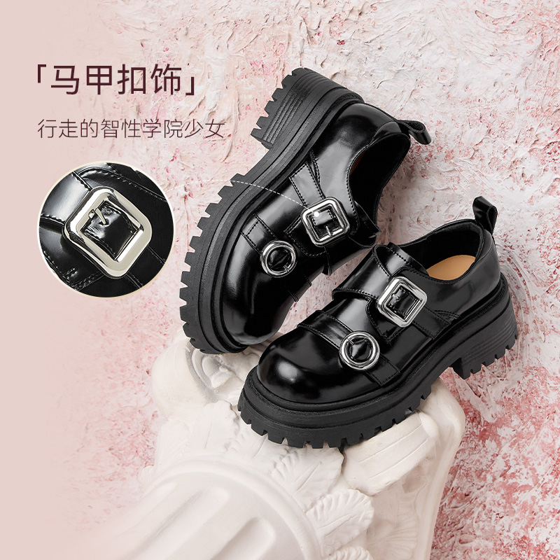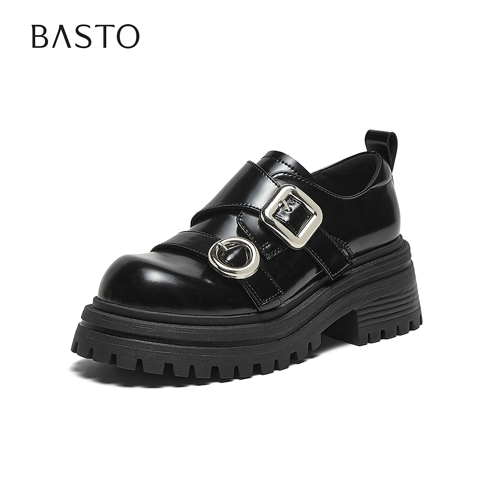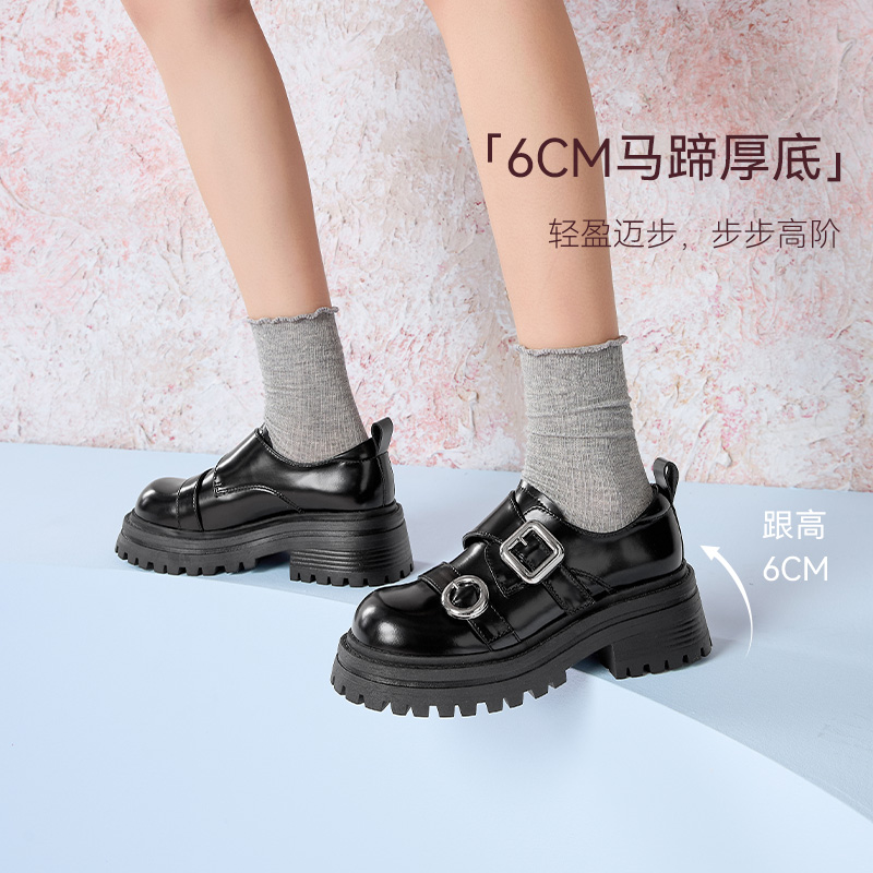 百思图2025春季新款英伦风魔术贴高跟牛津鞋乐福鞋女皮鞋B3832AM5