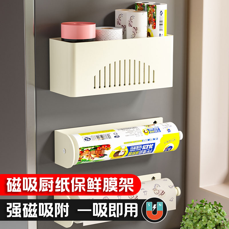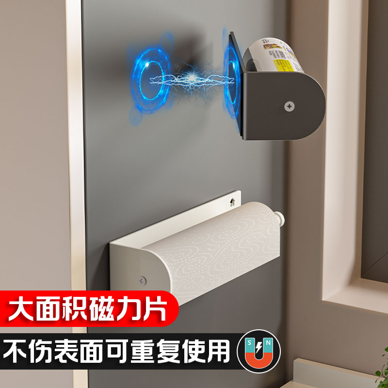 厨房磁吸纸巾架免打孔橱柜用纸磁铁置物卷纸架保鲜膜吸油纸收纳架