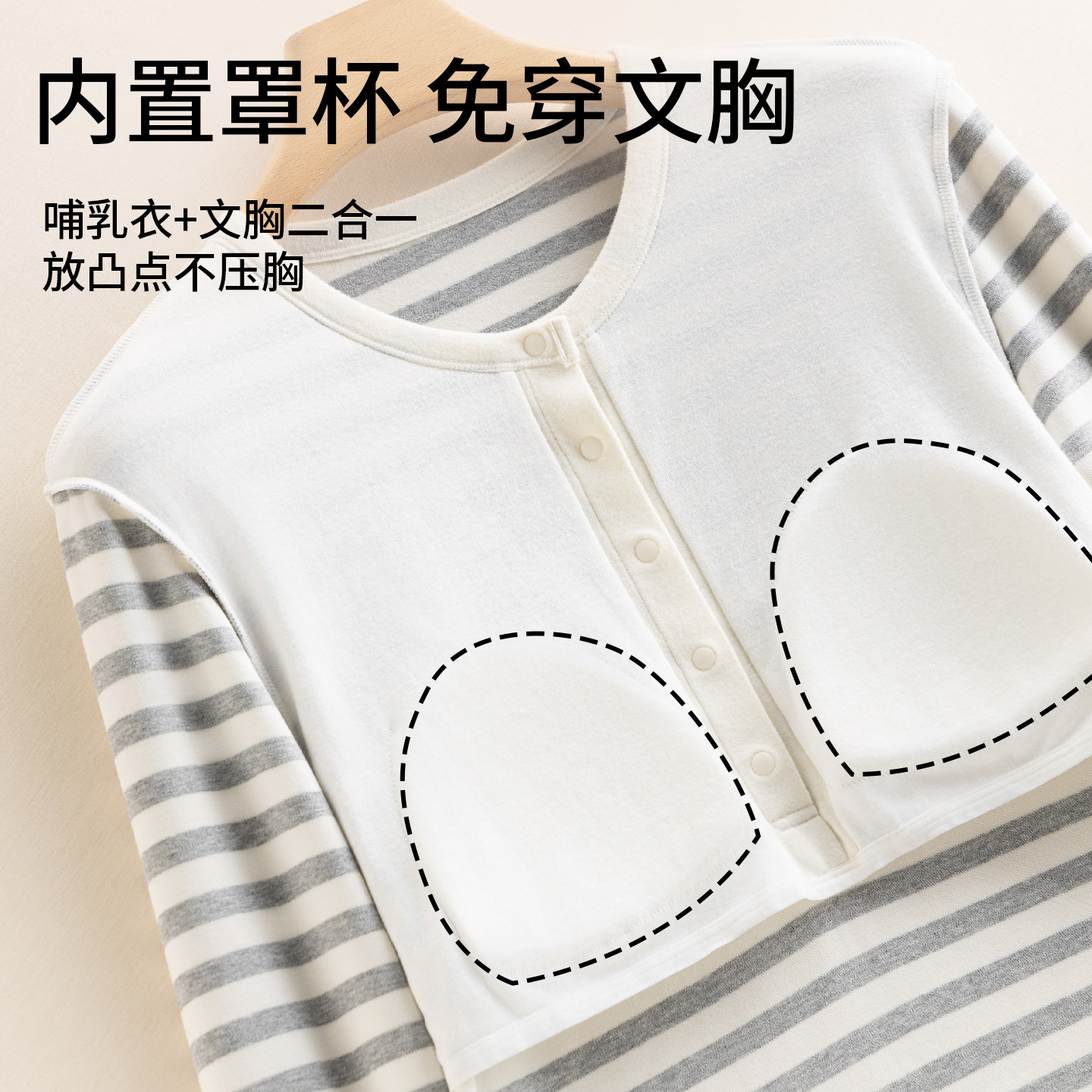 哺乳上衣秋衣秋冬款孕妇装打底衫保暖外出喂奶月子服免穿文胸大码