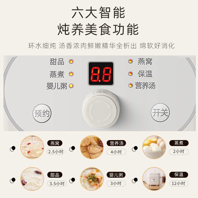 SDRNKA电炖盅隔水炖家用全自动电炖锅陶瓷煲汤锅24H预约6L炖汤锅