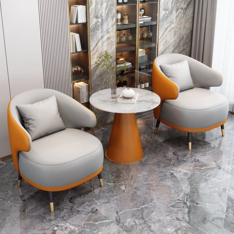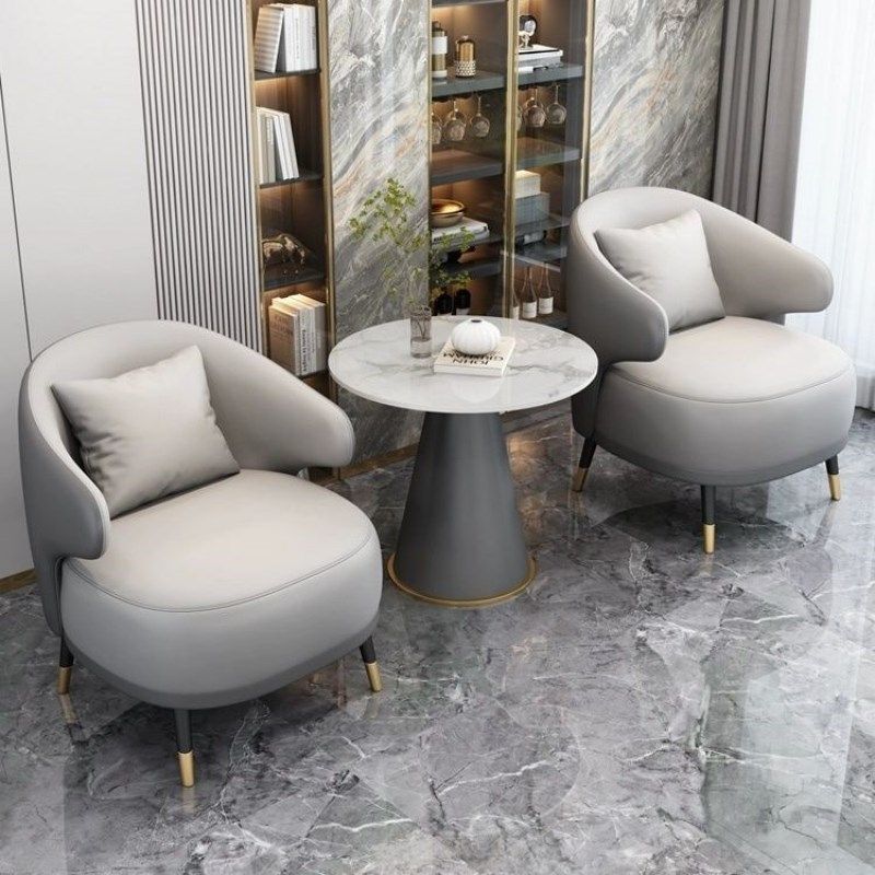 皮艺休闲单人小沙发休息区接待店铺酒店房间商务会客洽谈桌椅组合
