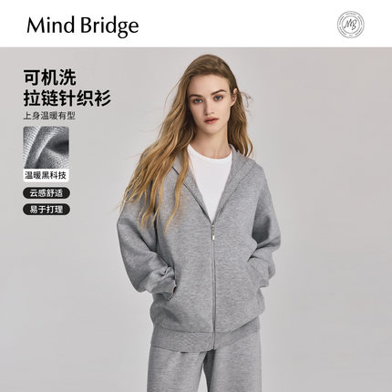 Mind Bridge2026春韩系纯色连帽针织外套女士简约休闲夹克开衫