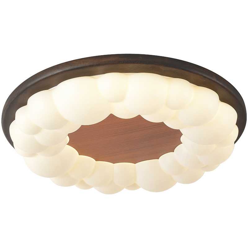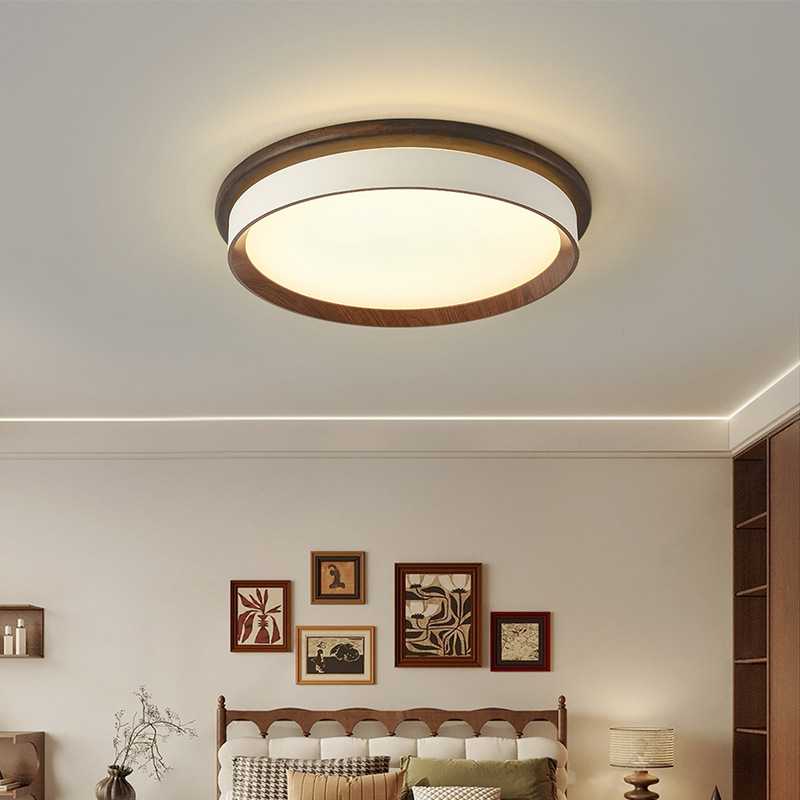 新中式led吸顶灯圆形中古风卧室灯实木长方形客厅灯书房阳台灯具