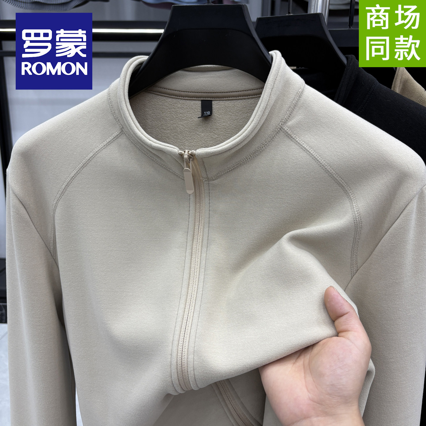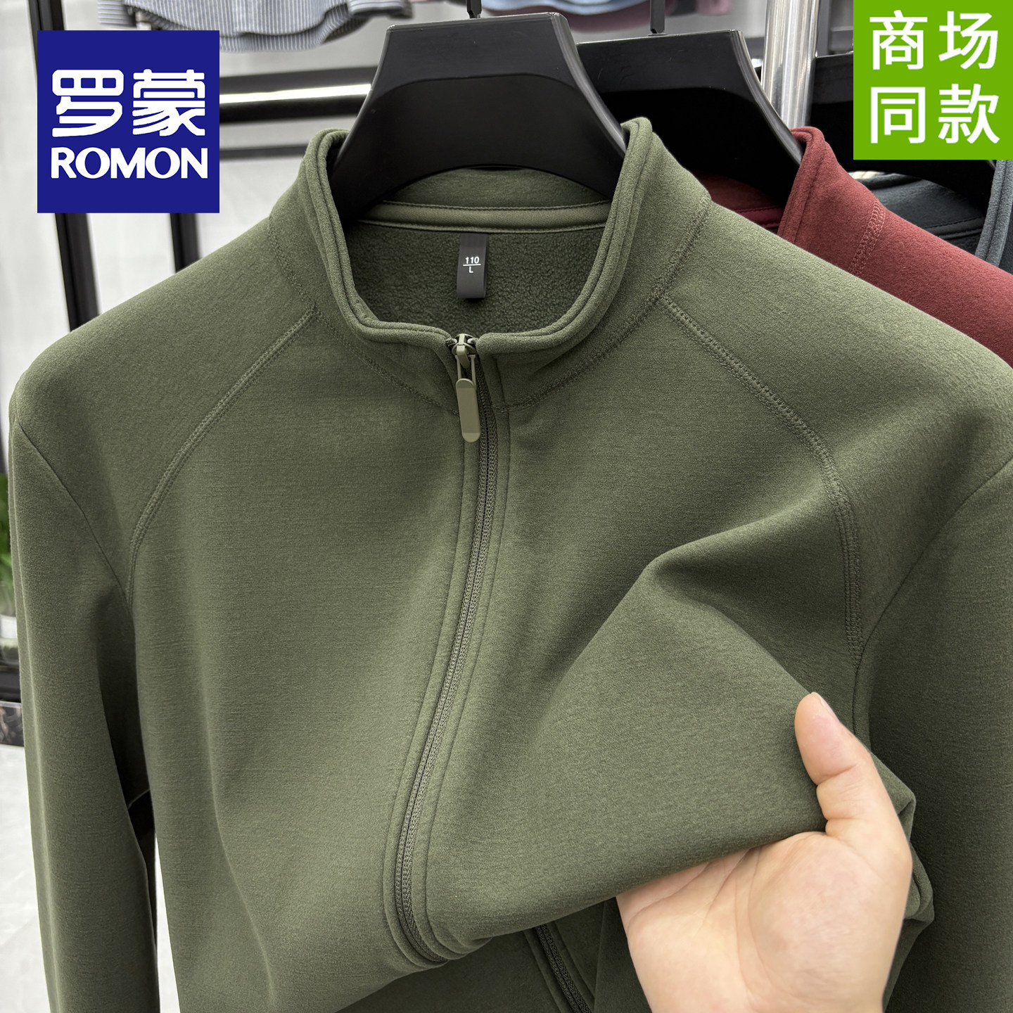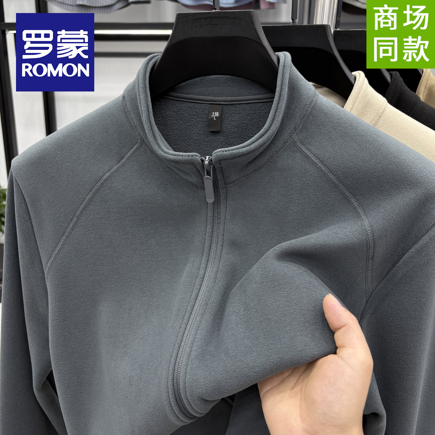 罗蒙秋冬高档加厚长袖夹克中青年男士摇粒绒休闲立领拉链开衫外套