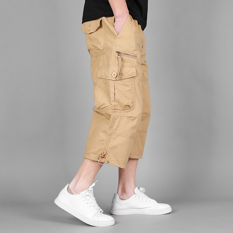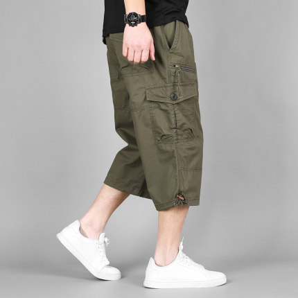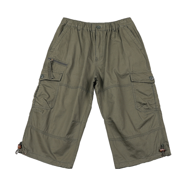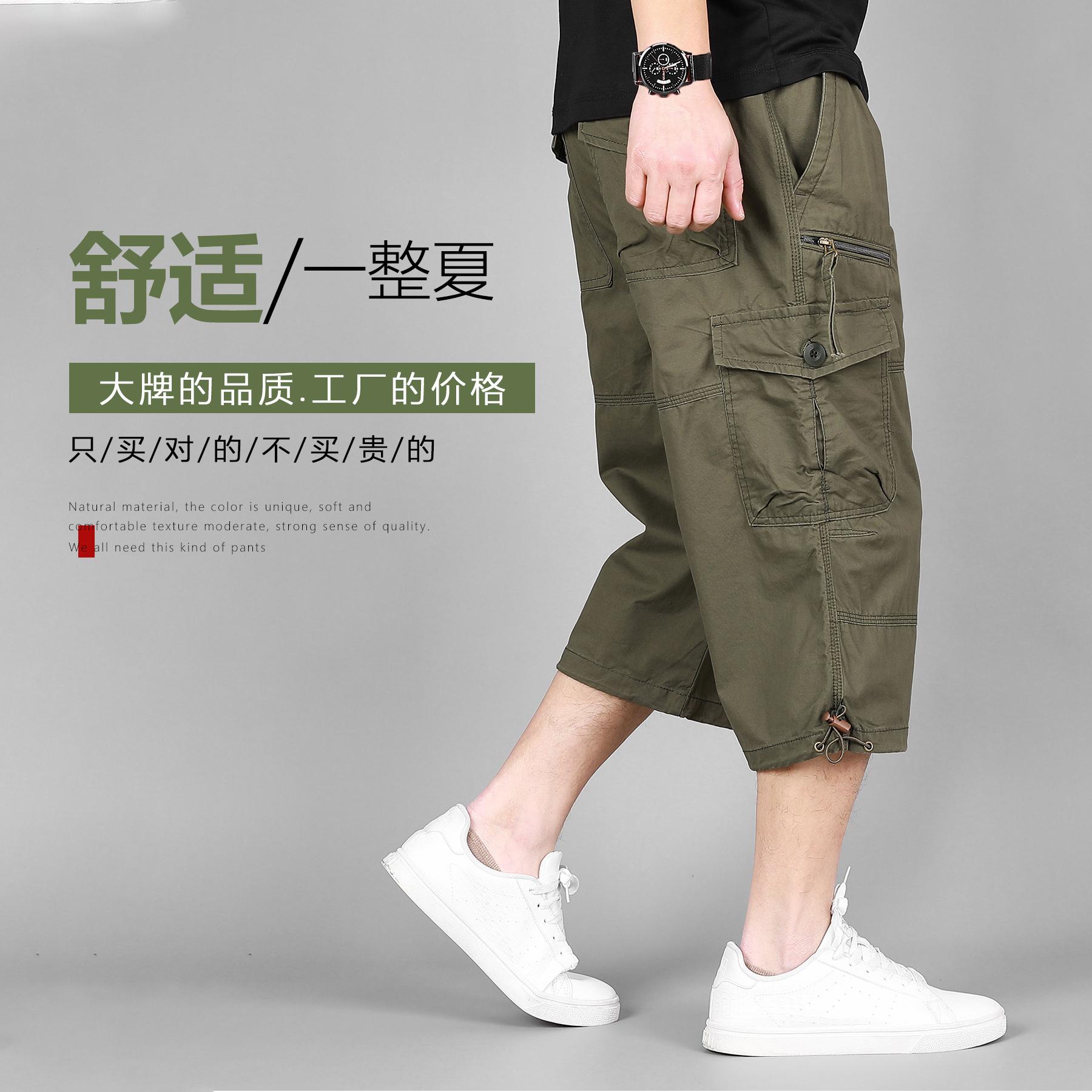 夏季薄款工装七分裤男士多口袋休闲宽松短裤纯棉透气中沙滩裤大码