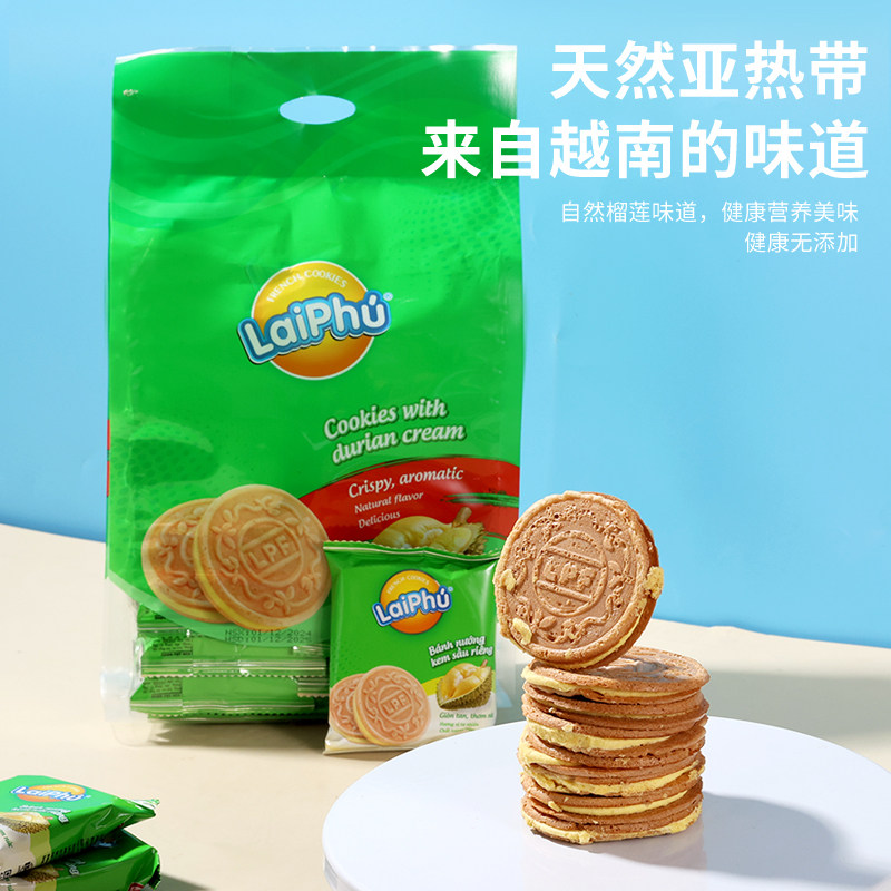 越南进口PhuLai来富榴莲夹心饼干法式薄脆饼干独立包装休闲零食品