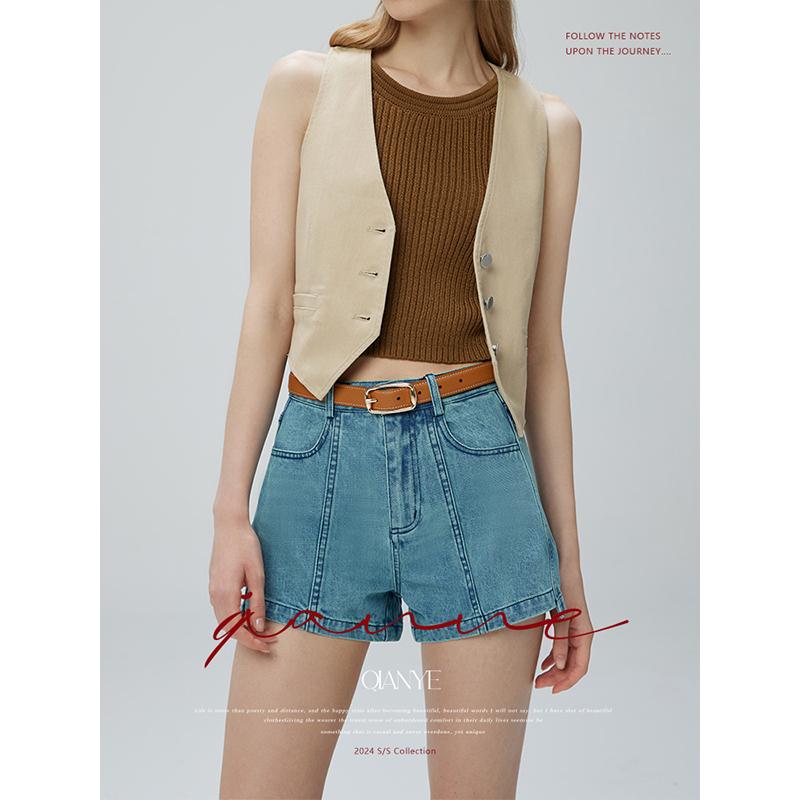 100%棉高端牛仔短裤女夏2024新款新疆长绒棉蓝色高腰百搭A版热裤