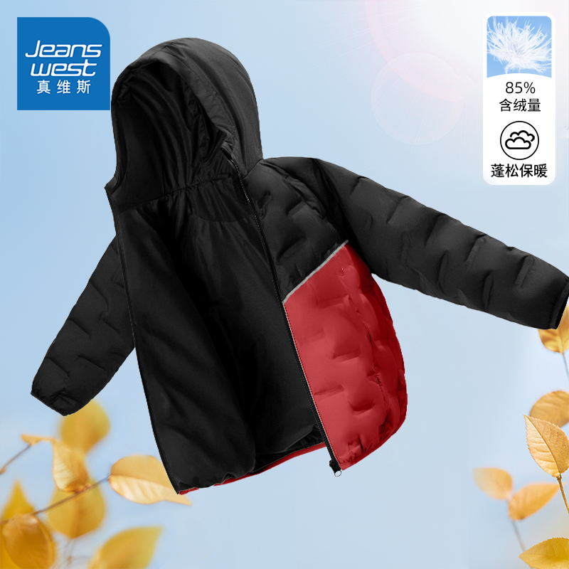 真维斯童装男童羽绒服秋冬款儿童防水连帽冬装外套男孩90绒羽绒衣