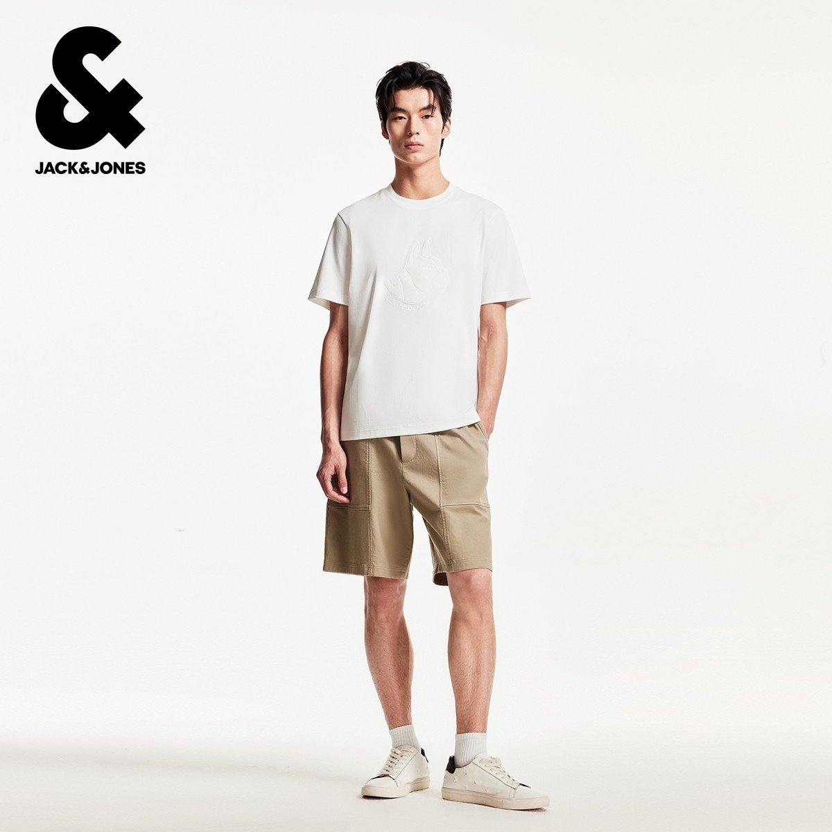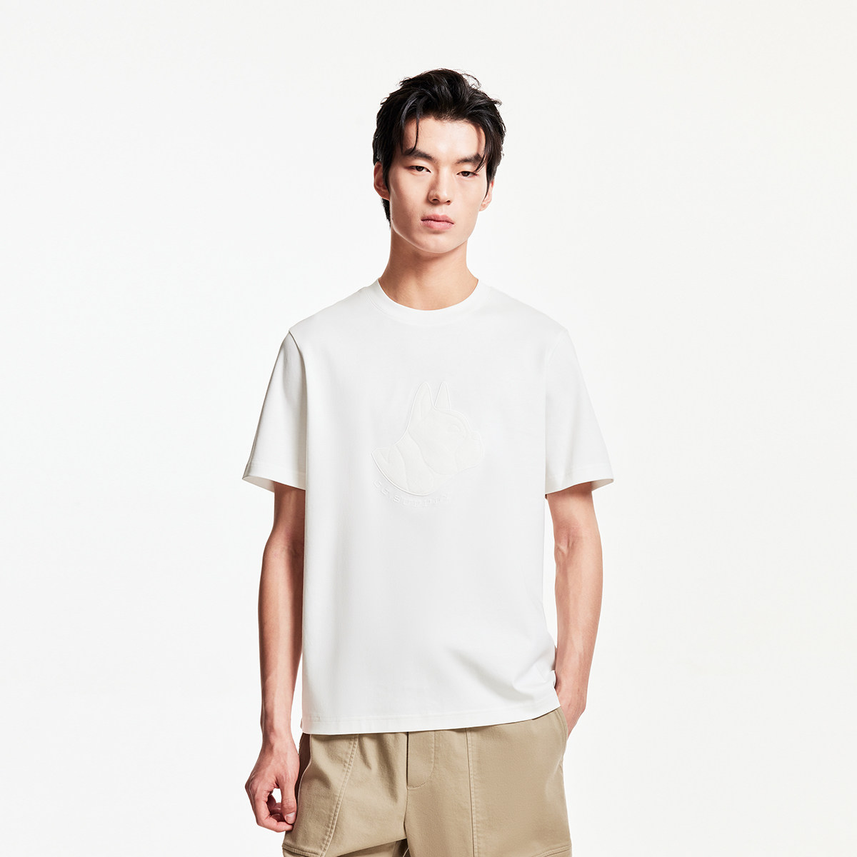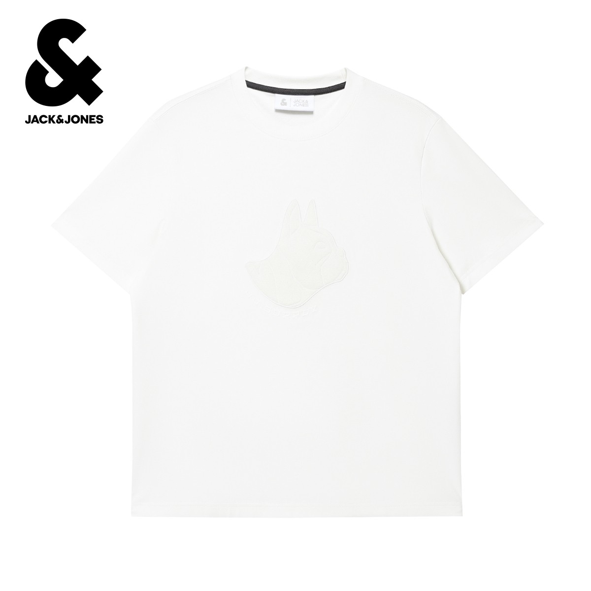 杰克琼斯秋季时尚潮流罗纹圆领领口法斗犬图案植绒贴布款T恤男装
