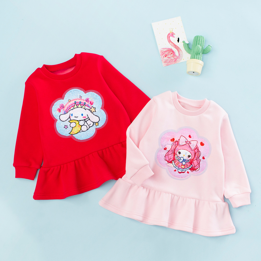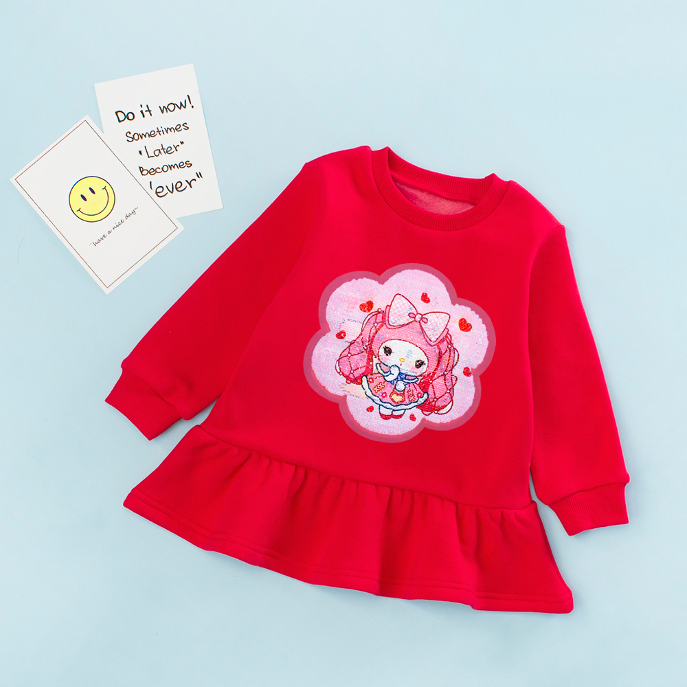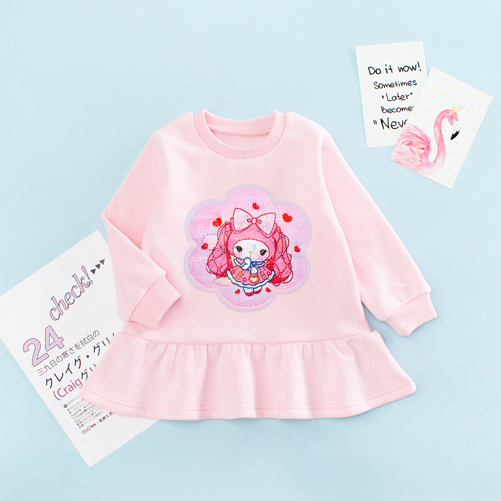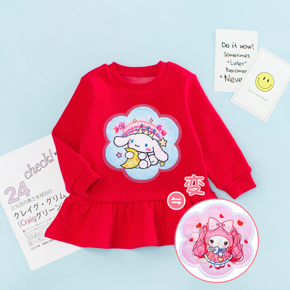 女童加绒连衣裙秋冬亮片变色衣服美乐蒂儿童薄绒裙子玉桂狗卫衣裙