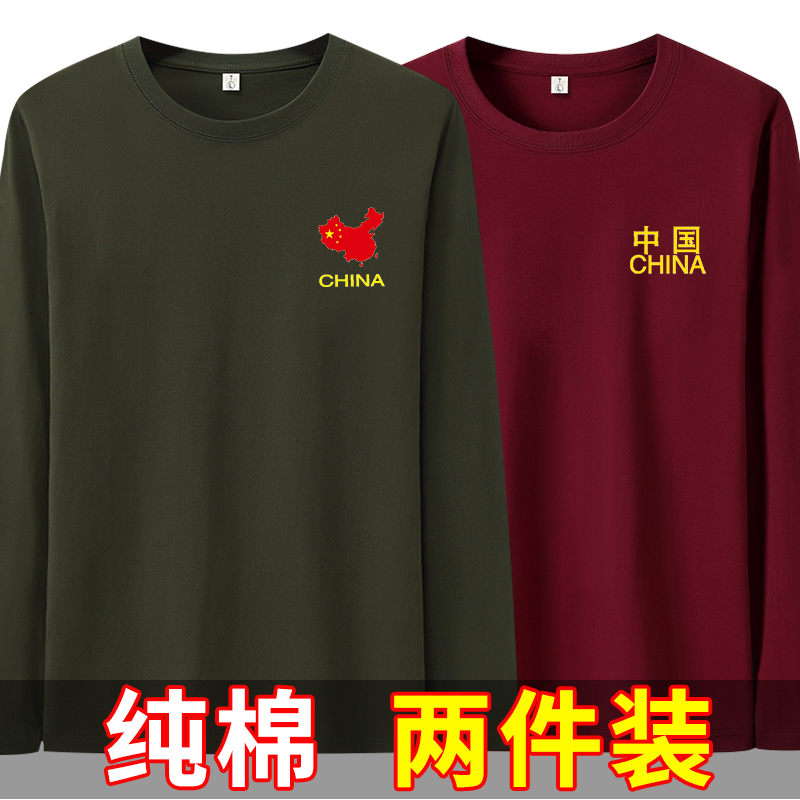 100%纯棉男士长袖T恤秋季圆领男装体恤宽松秋衣大码上衣男打底衫