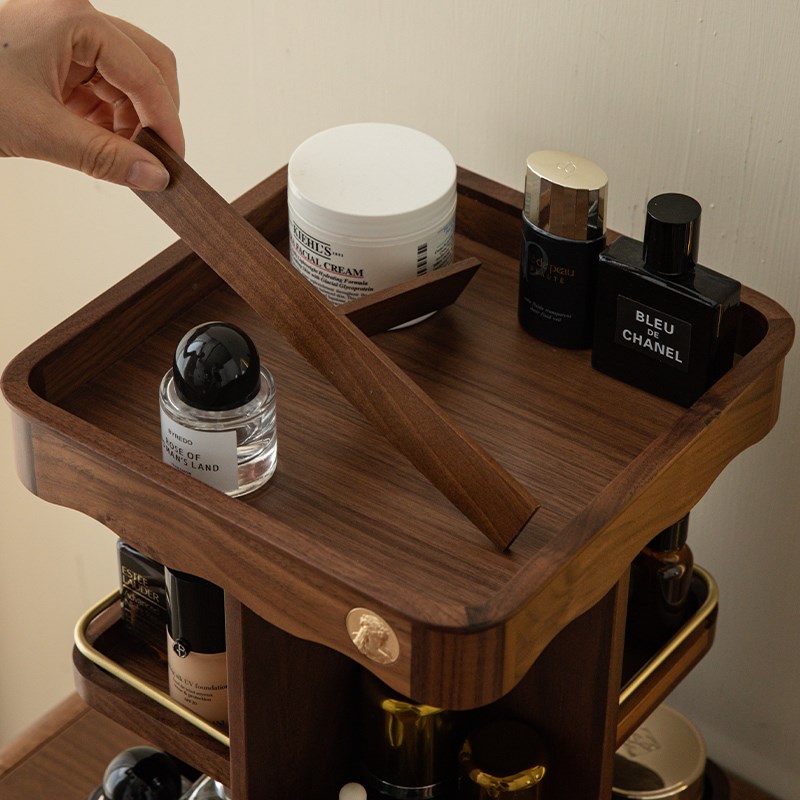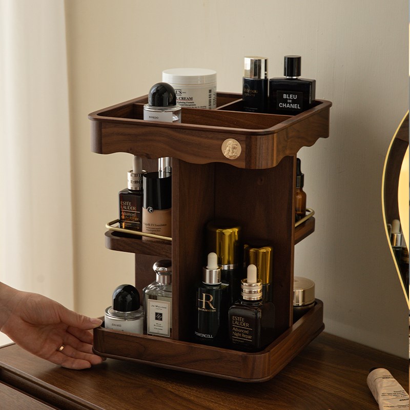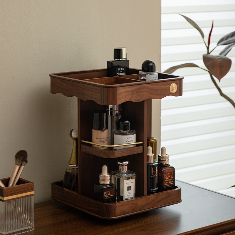 化妆品收纳盒桌面大容量r木质香水梳妆台护肤品置物架旋转首饰托