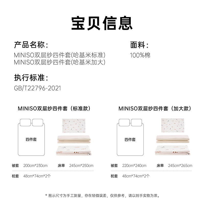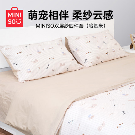 MINISO名创优品【纯棉双层纱四件套】A类亲肤床单被套枕套双人床
