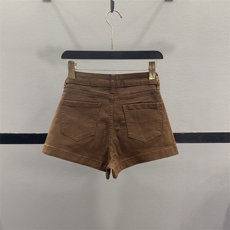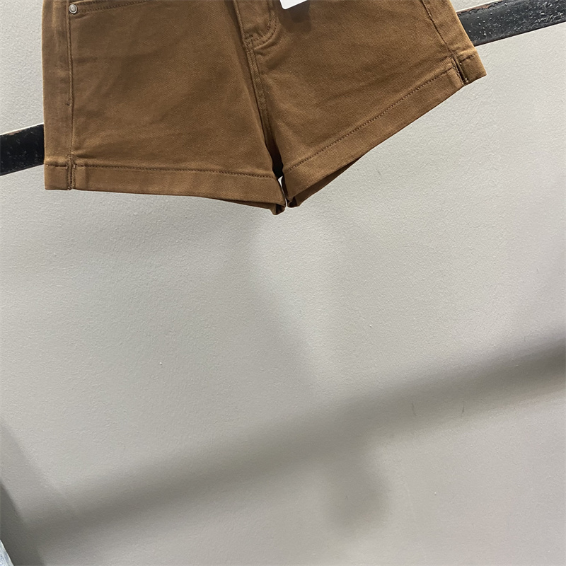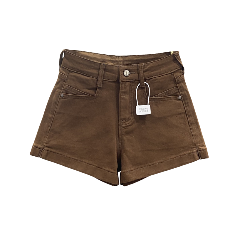 咖啡色高腰牛仔短裤女2025秋季新款弹力包臀显瘦辣妹A字阔腿热裤