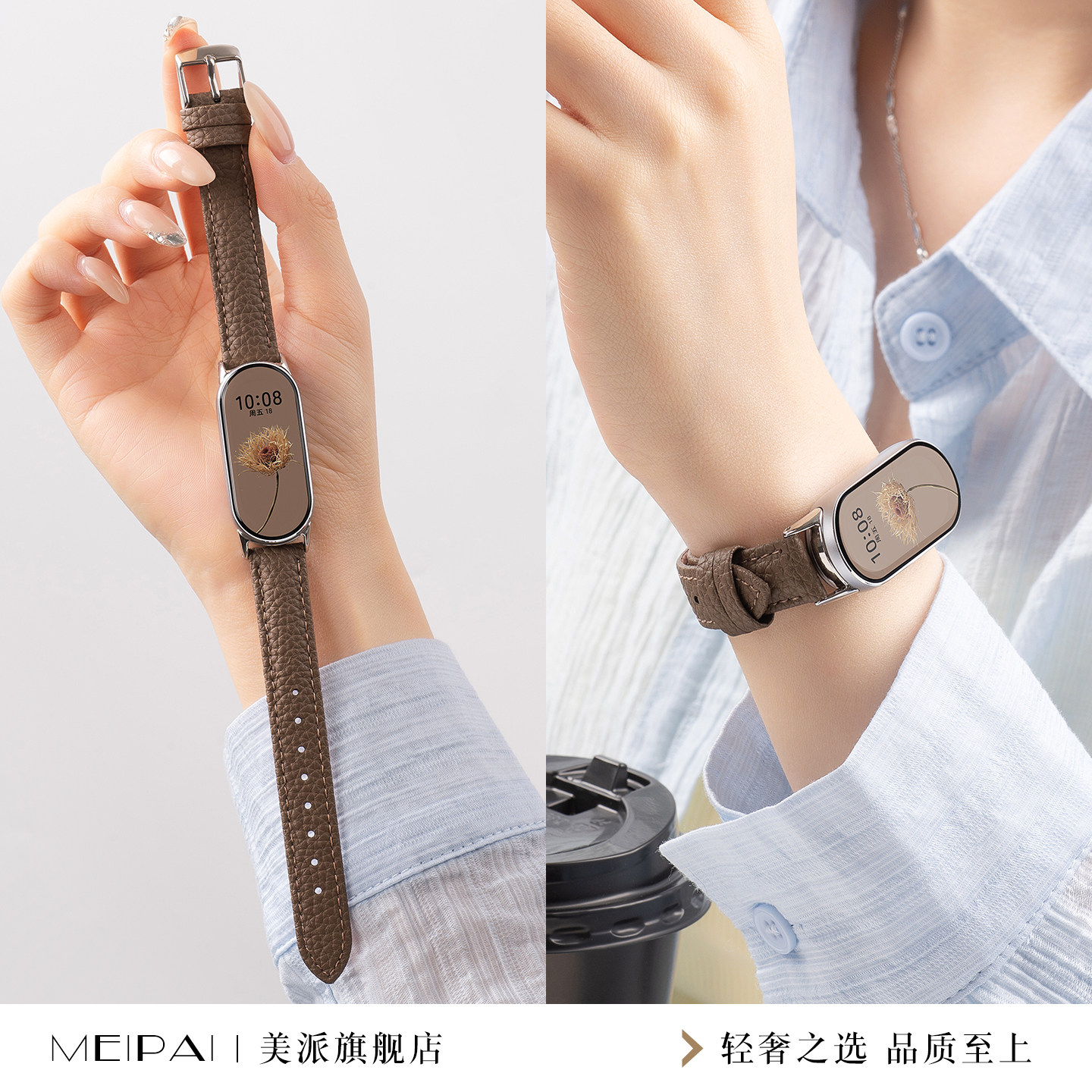 美派适用小米手环10荔枝纹皮革表带新款小米手环9真皮8女款手表带冬季小米手环7代智能6高级5运动替换4男腕带